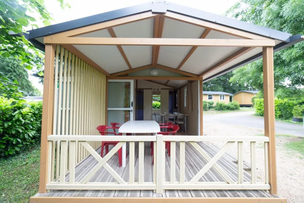 2 bedroom chalet Campeco for 4 people maximum - 24 m2 - covered terrace This chalet is equipped with 1 bedroom with 1 double bed, 1 bedroom with 2 single beds next to each other, 1 bathroom with shower, washbasin and toilets, kitchen area, living-room, covered terrace.