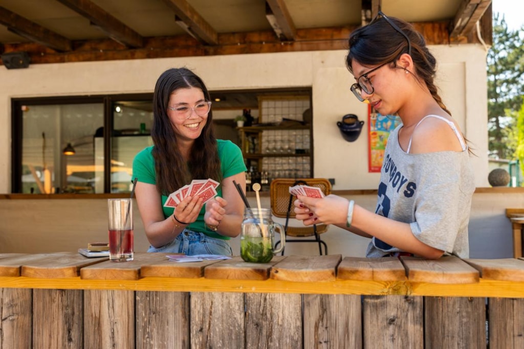 Dieser modern ausgestattete Standcaravan verfügt über eine geräumige Wohnküche mit Theke, einem 4-flammigen Gasherd, einer Kühl-Gefrierkombination, einem Mikrowellenherd und über ein großes Wohnzimmer, ein Badezimmer mit separater Toilette und 2 Schlafzimmer. Die Standcaravans haben eine schöne Terrasse mit Terrassenmöbeln.