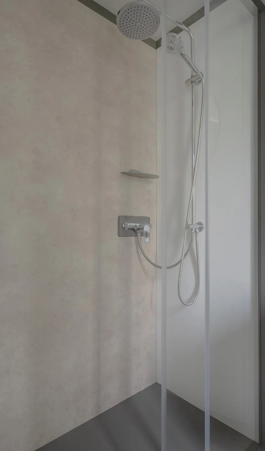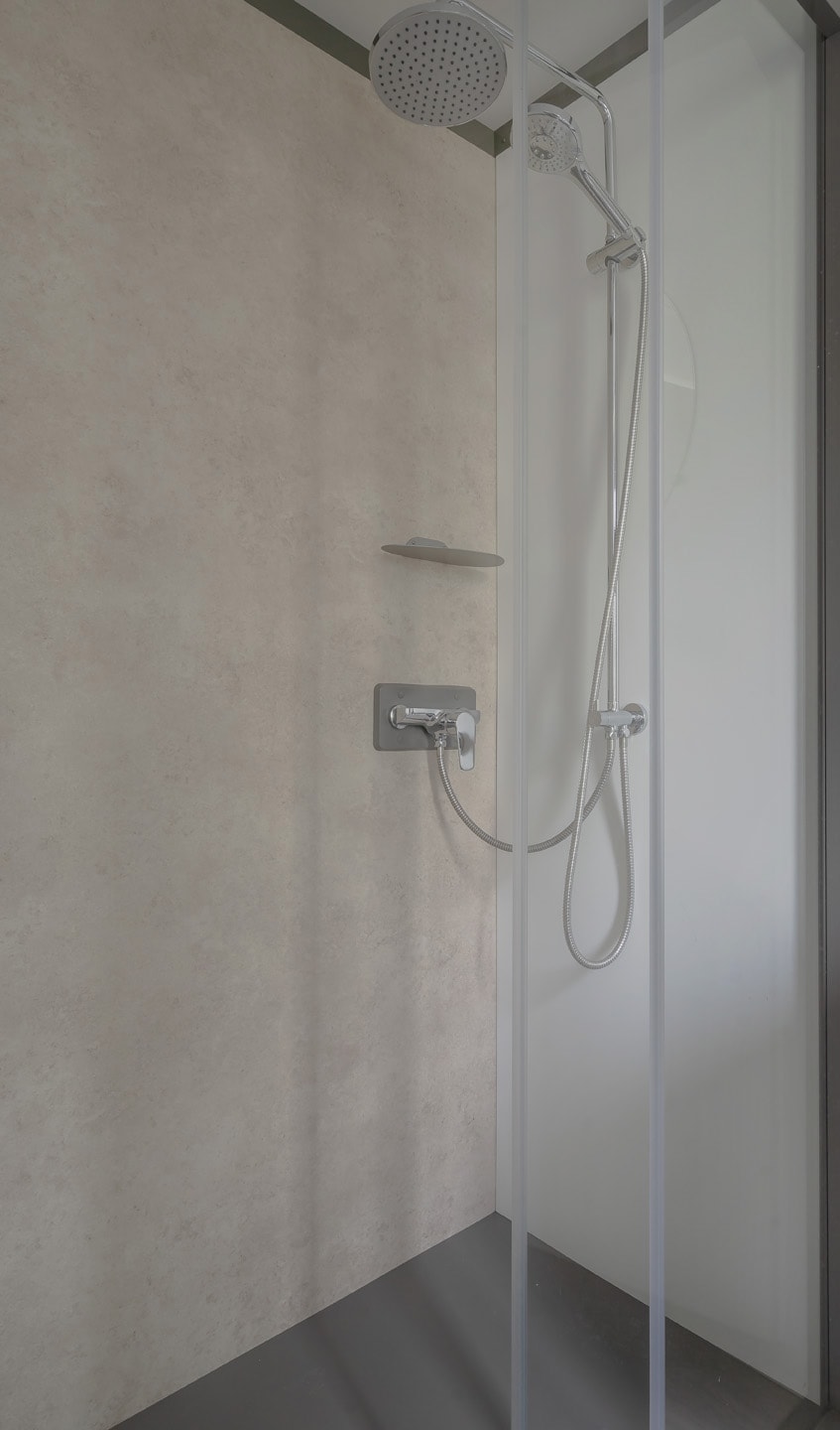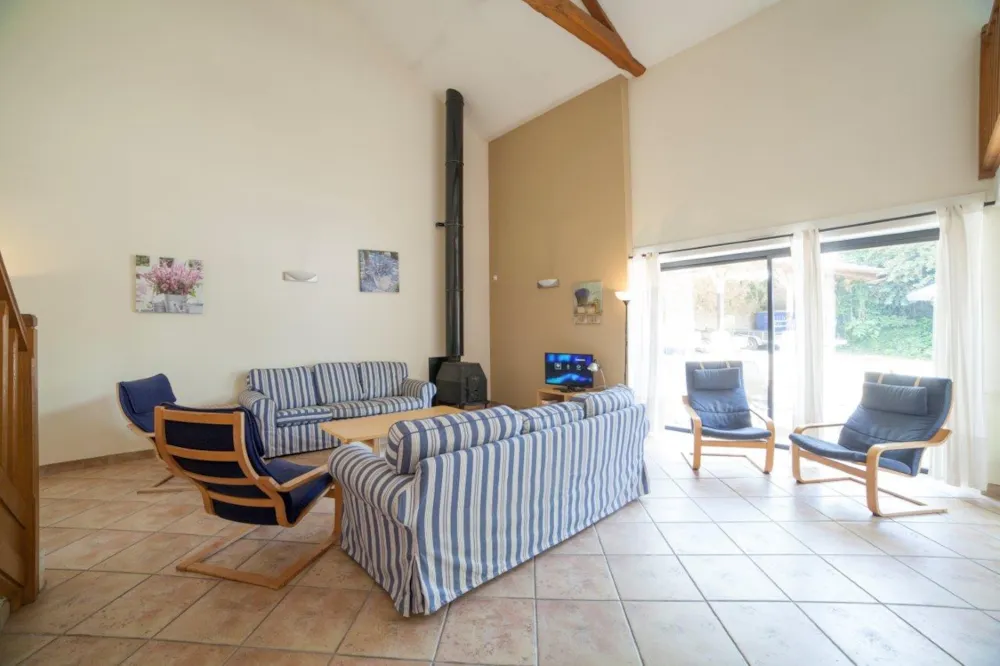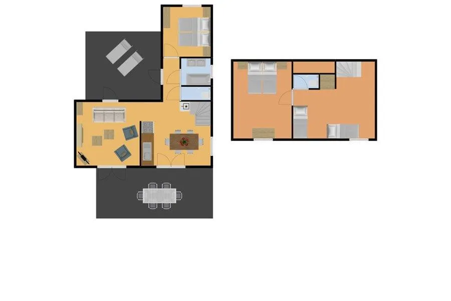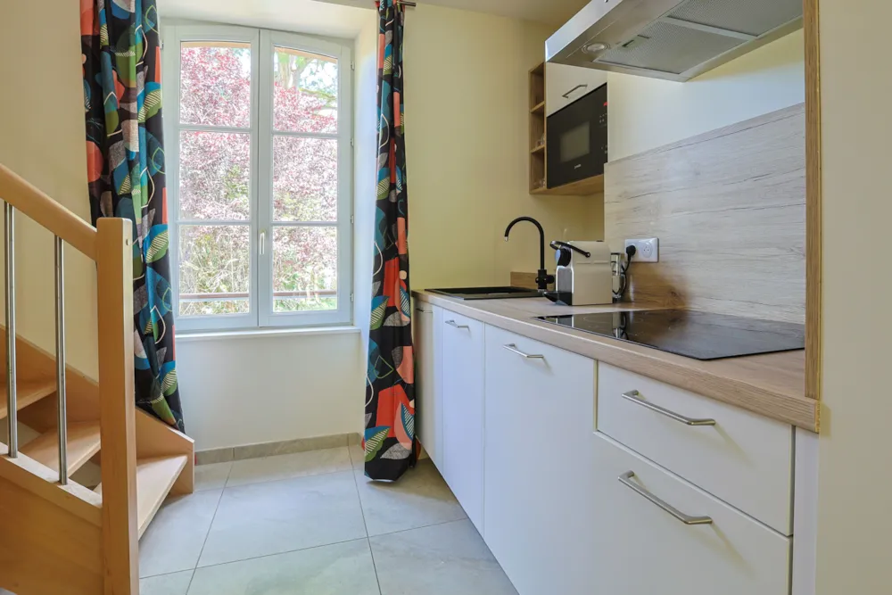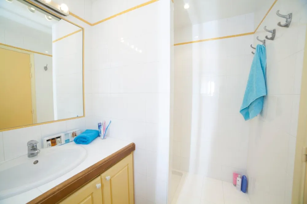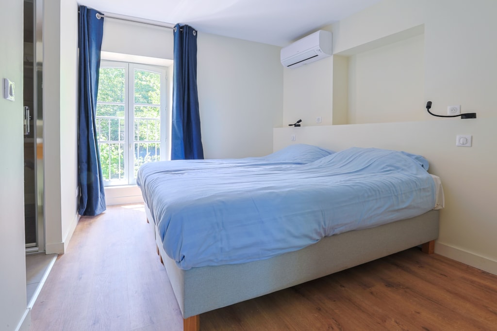 The Domme mobile home features a large live-in kitchen equipped with a dishwasher, combination microwave oven, four-ring hob, fridge-freezer, a dining table with seating and two chairs, a TV (French channels) and DVD player. The mobile home has two bedrooms (one with a double bed (160x200)), a bathroom with shower and washbasin and separate toilet. The cosy veranda has modern patio furniture for four. Two sun loungers are situated next to the accommodation. This mobile home is less suitable for guests with mobility problems because of the high location.