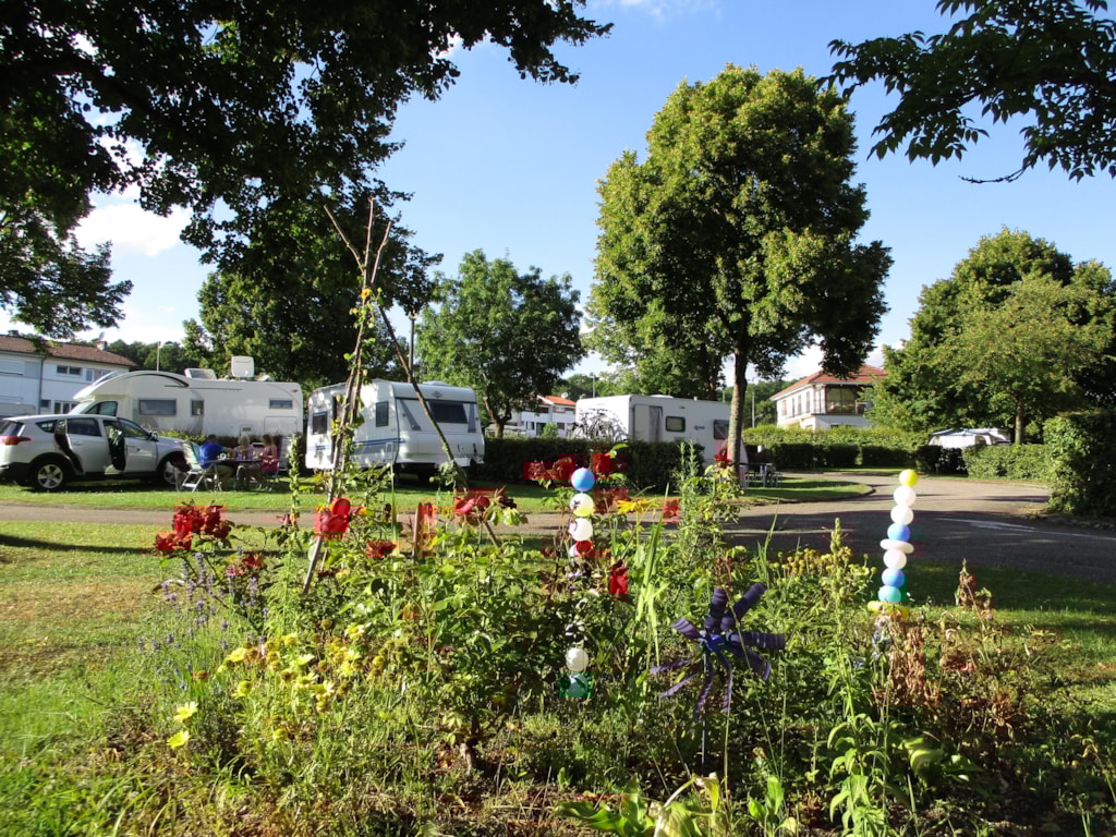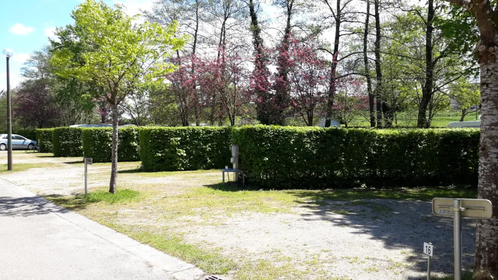 Angenehme große Stellplätze mit Hecken abgegrenzt und Bäumen die Schatten spenden. Frischwasser in Vittel Qualität!