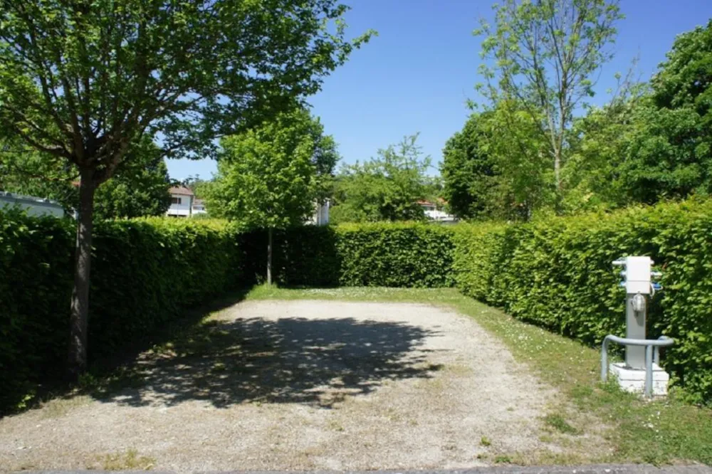 Großzügige Stellplätze mit Hecken abgegrenzt.