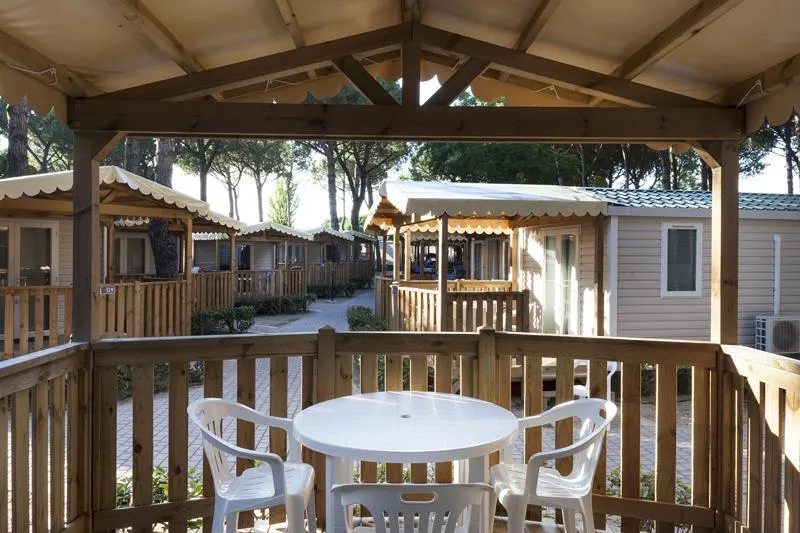 Baia Comfort ist ca. 22 qm groß und kann maximal 4 Erwachsene aufnehmen. Es besteht aus einem Zimmer mit Doppelbett und einem Zimmer mit zwei Einzelbetten, einem Bad mit WC, Dusche und Waschbecken, einer Toilette mit WC und Waschbecken, Wohnküche mit Sofa, Tisch und Stühle, Kochnische mit Spülbecken und Kühlschrank, Außenveranda mit Tisch und Stühlen. Im Mobilhaus mit inbegriffen sind Sat-TV, Geschirr und Besteck, Decken und Kissen. Wäscheständer. Klimaanlage gegen Aufpreis (siehe Preisliste)