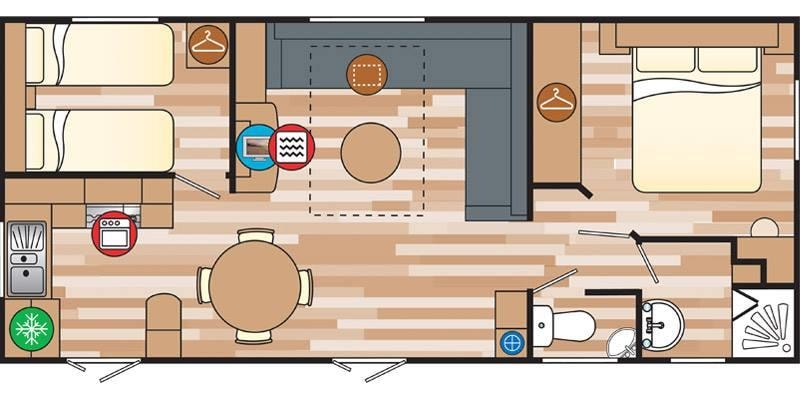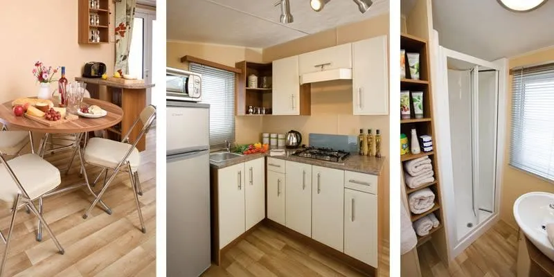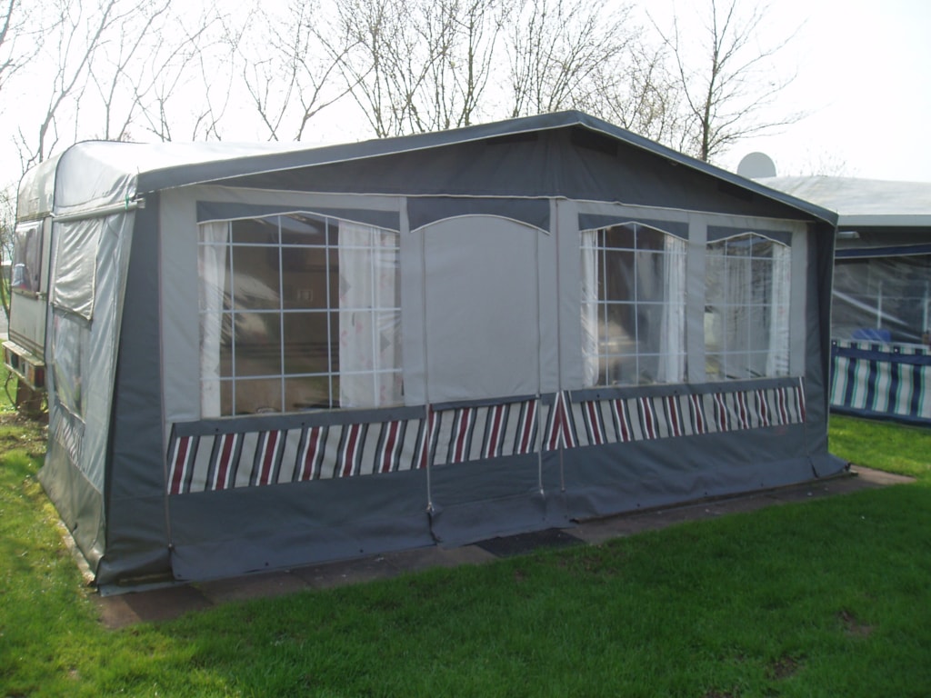 Alle Mietwohnwagen sind mit einem Vorzelt, Kühlschrank, Spüle, Gartenmöbel, Grill, Kaffeemaschine usw. ausgestattet.