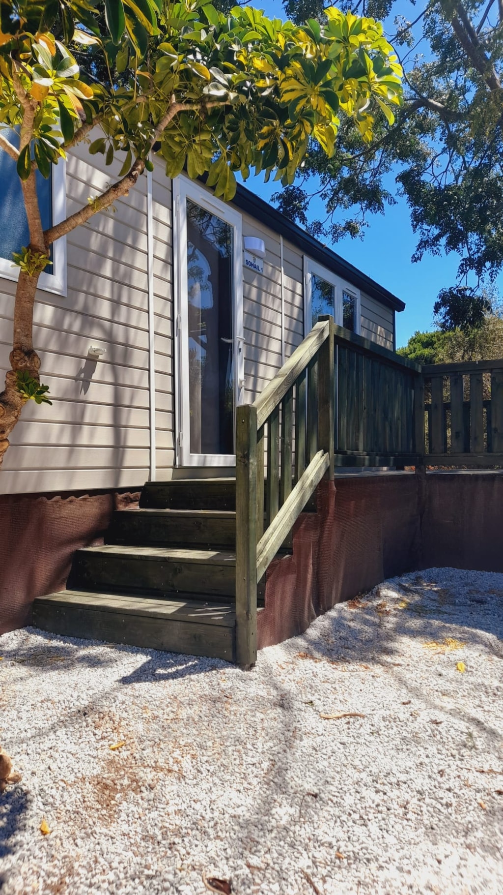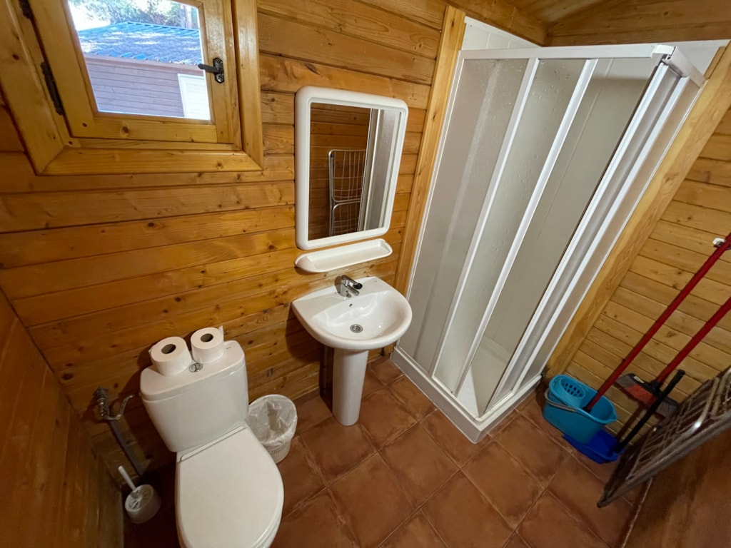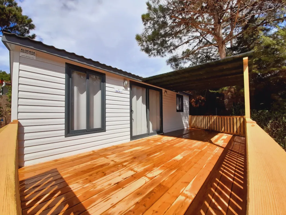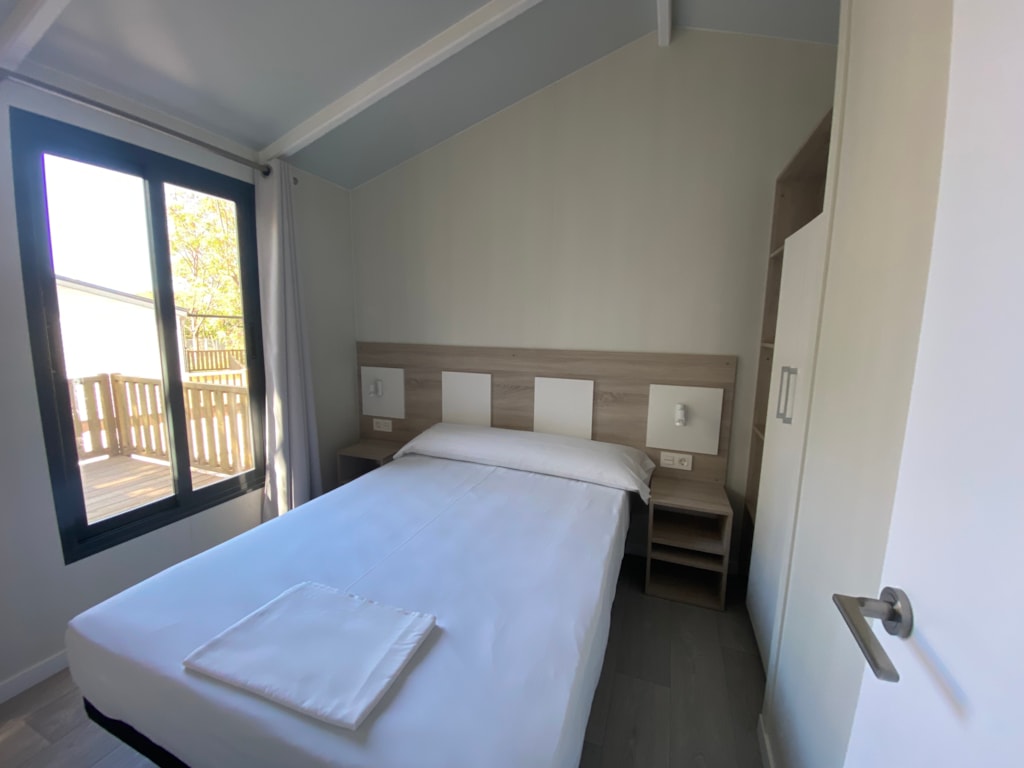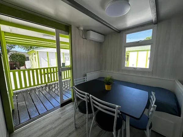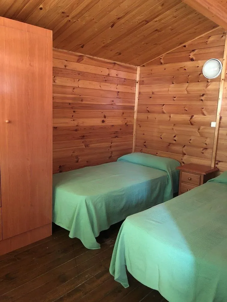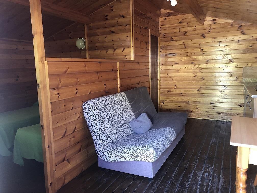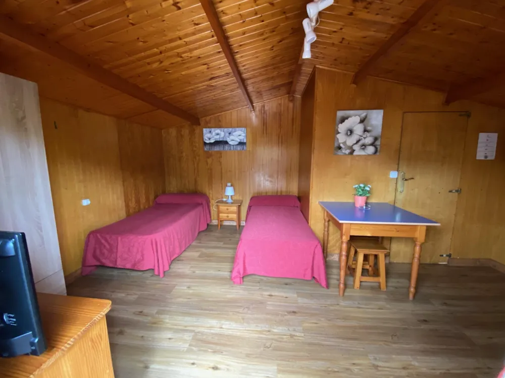Geräumiger Holzbungalow im Studio-Stil für bis zu 8 Personen, mit eigenem Bad, Klimaanlage, Terrasse und kostenlosem Parkplatz. Haustiere sind willkommen (Hunde). Reservierung für 4, 5, 6 oder 8 Personen möglich. Wählen Sie den Tarif, der am besten zu Ihren Bedürfnissen passt, je nach Anzahl der Personen und ob Sie mit Haustier reisen (maximal 2 Haustiere).