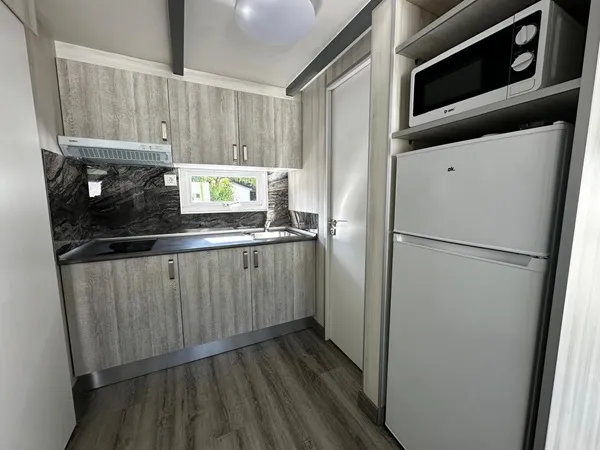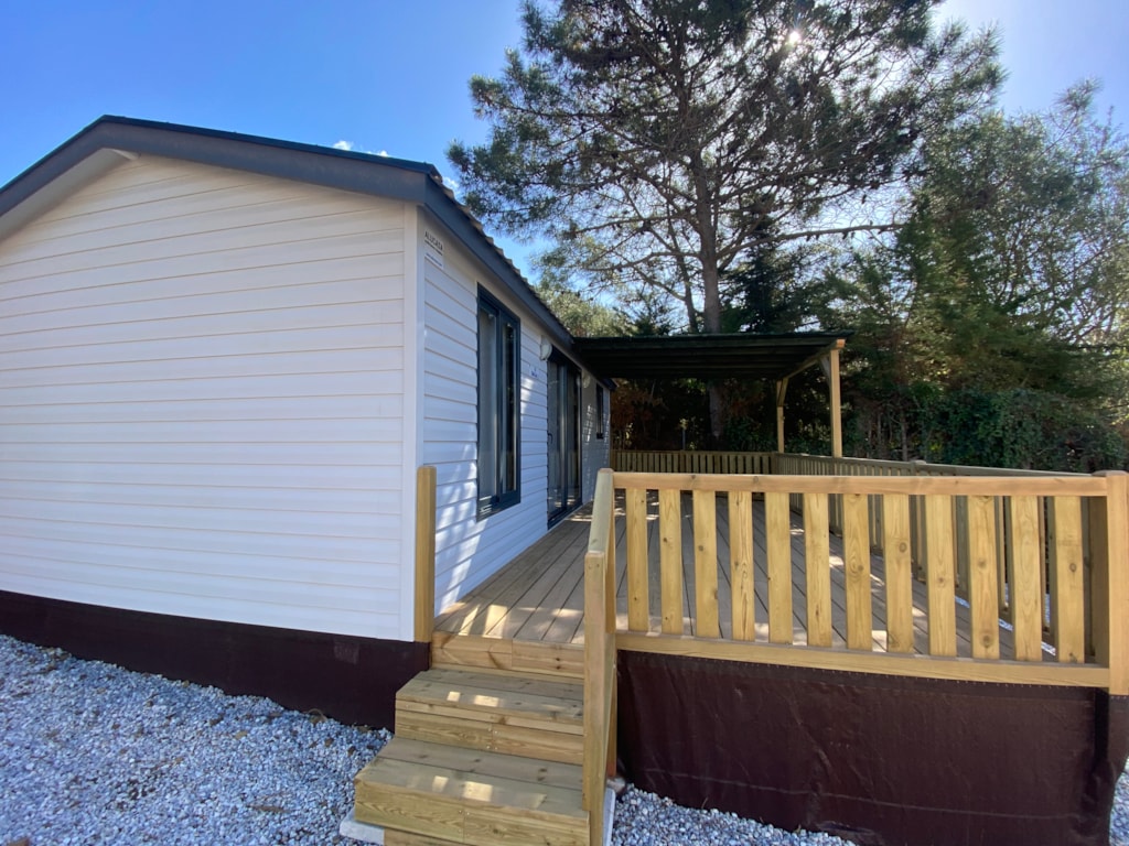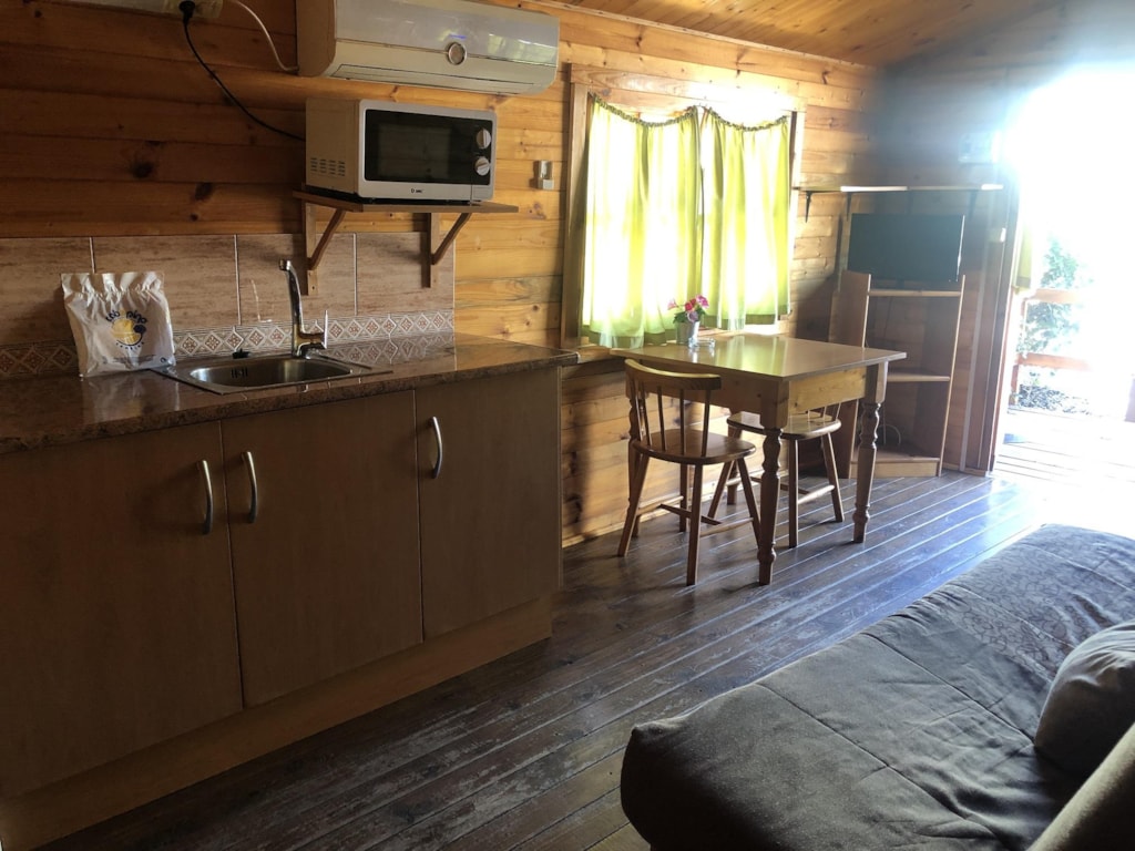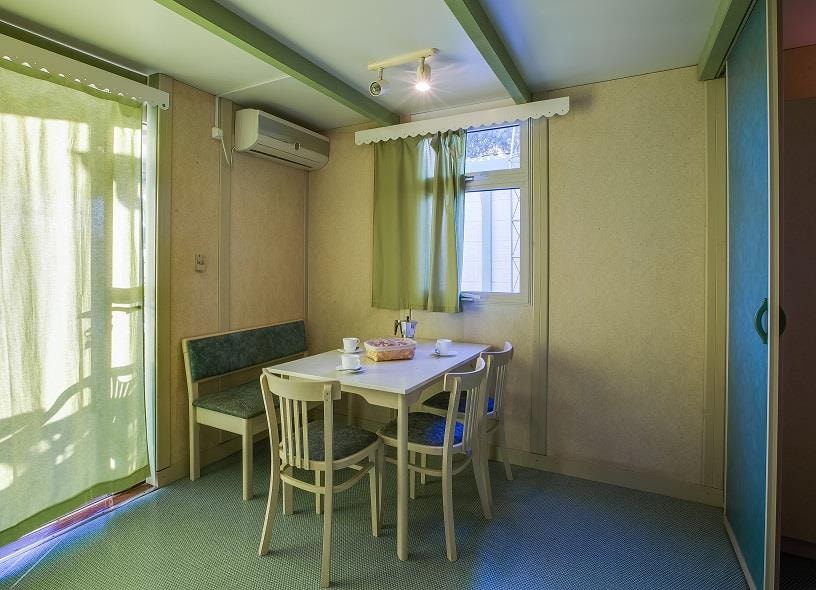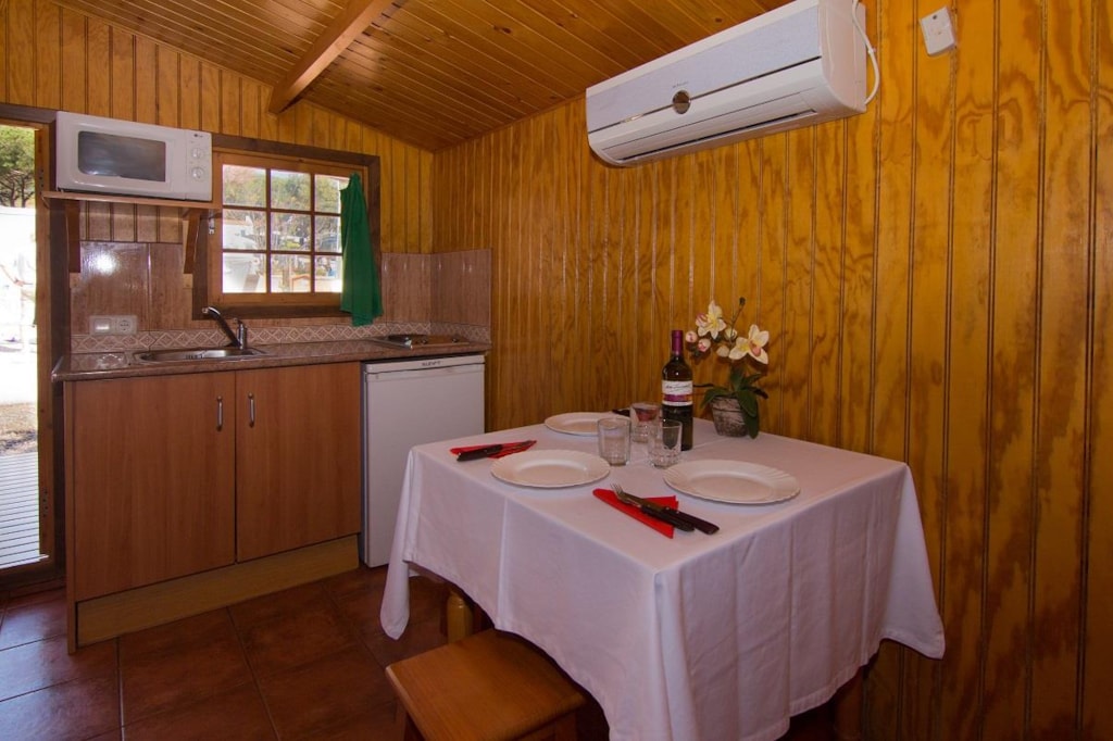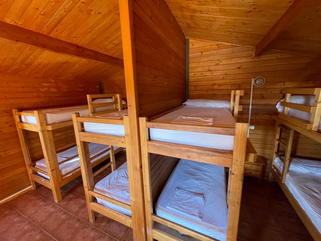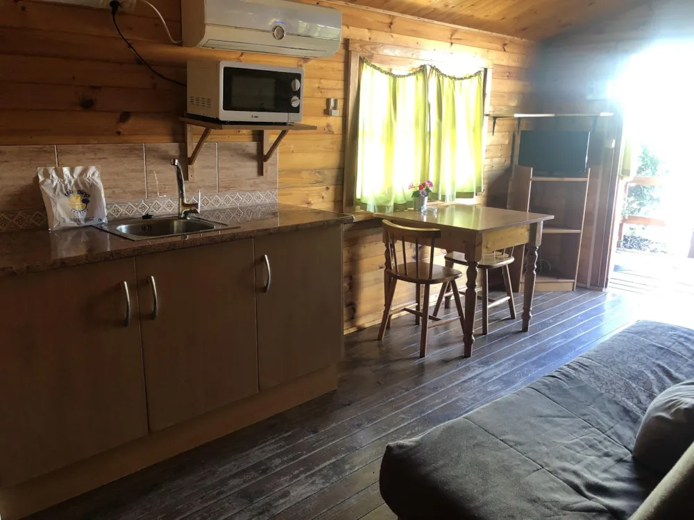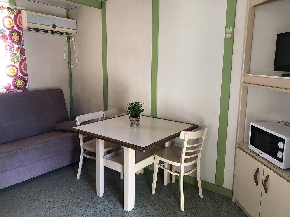 Geräumiger Holzbungalow im Studio-Stil für bis zu 8 Personen, mit eigenem Bad, Klimaanlage, Terrasse und kostenlosem Parkplatz. Haustiere sind willkommen (Hunde). Reservierung für 4, 5, 6 oder 8 Personen möglich. Wählen Sie den Tarif, der am besten zu Ihren Bedürfnissen passt, je nach Anzahl der Personen und ob Sie mit Haustier reisen (maximal 2 Haustiere).