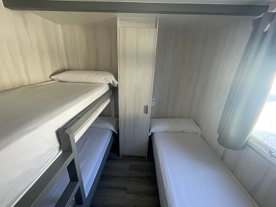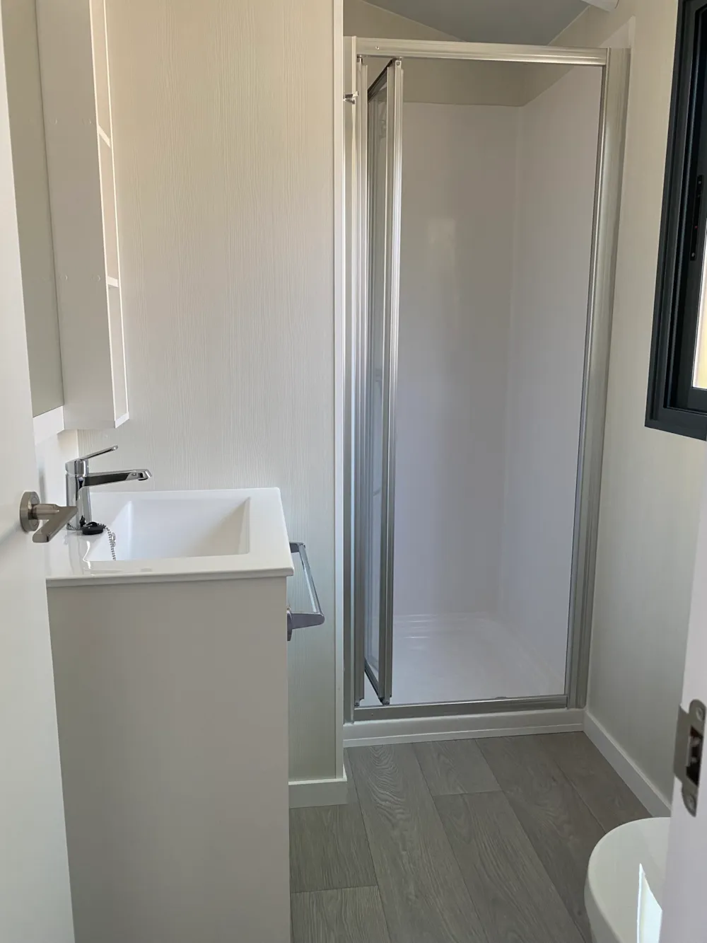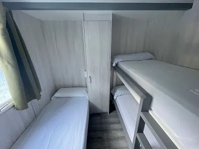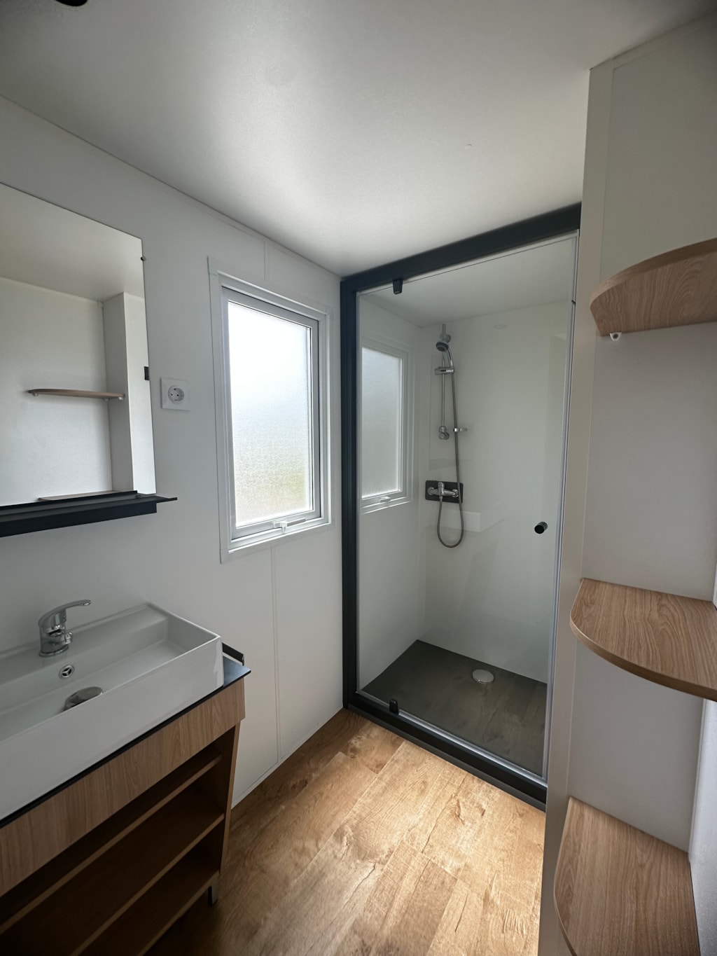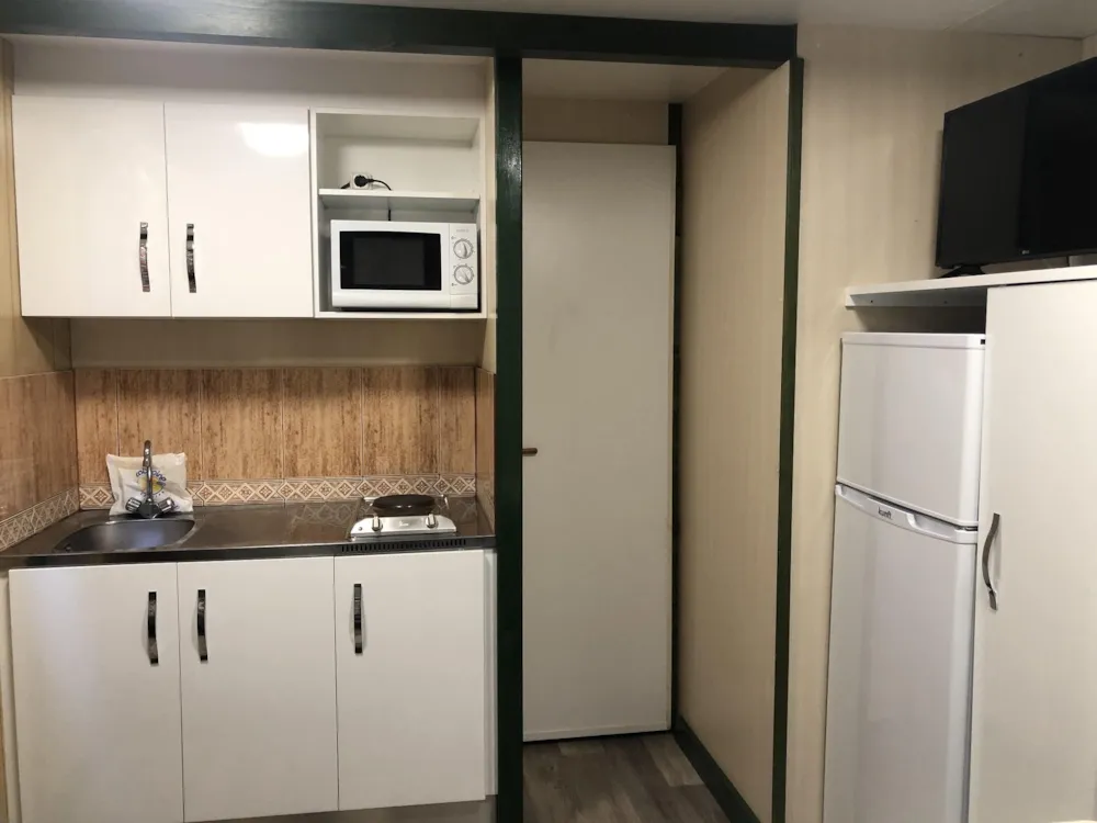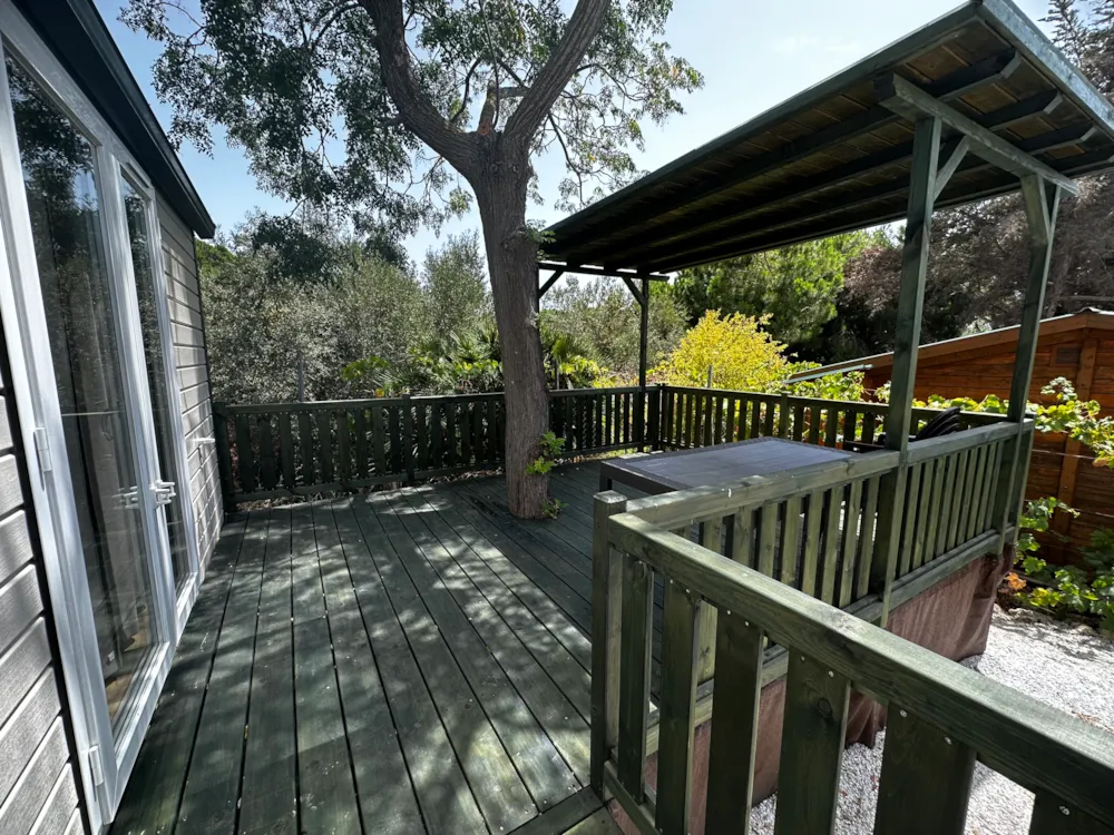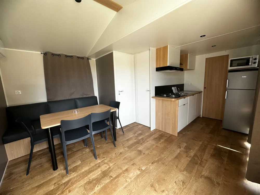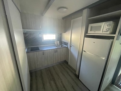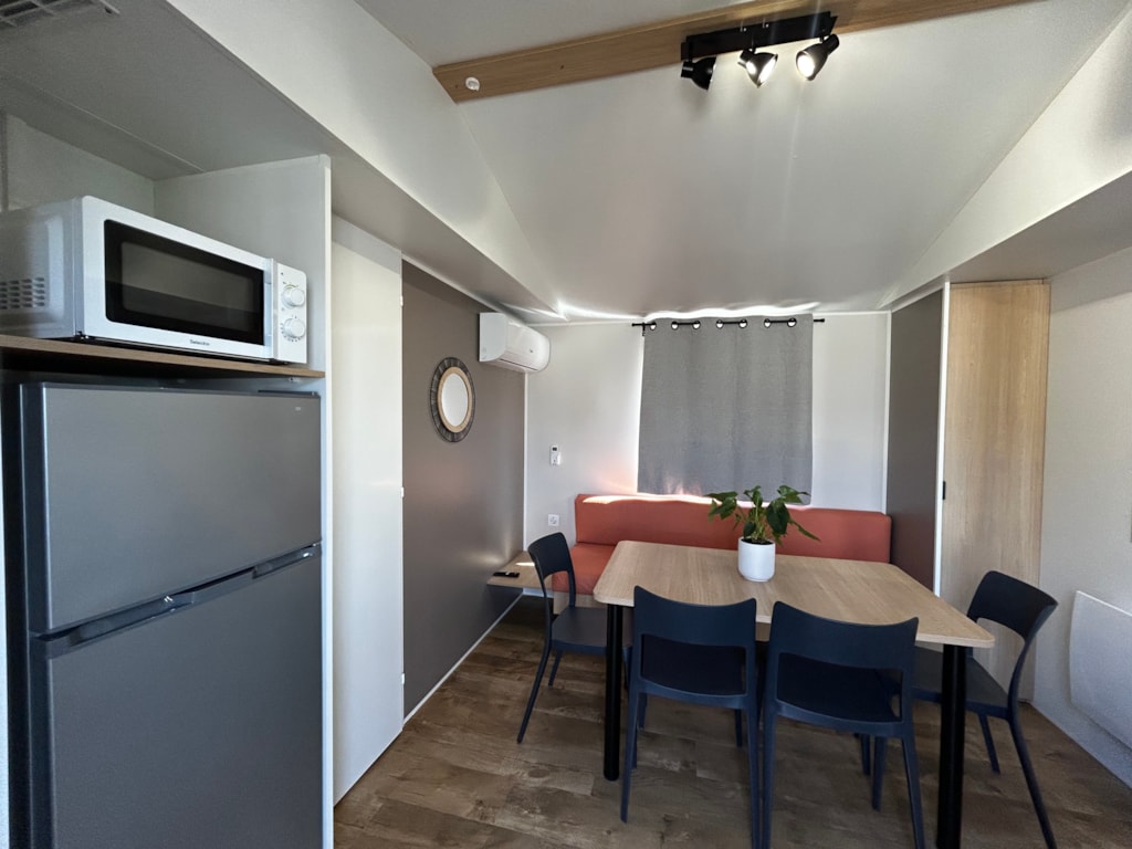 Geräumiger Holzbungalow im Studio-Stil für bis zu 8 Personen, mit eigenem Bad, Klimaanlage, Terrasse und kostenlosem Parkplatz. Haustiere sind willkommen (Hunde). Reservierung für 4, 5, 6 oder 8 Personen möglich. Wählen Sie den Tarif, der am besten zu Ihren Bedürfnissen passt, je nach Anzahl der Personen und ob Sie mit Haustier reisen (maximal 2 Haustiere).