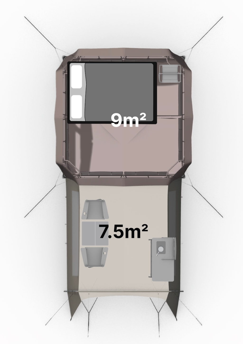 Ein Auto pro Unterkunft; zusätzliche Zelte unter bestimmten Bedingungen erlaubt.