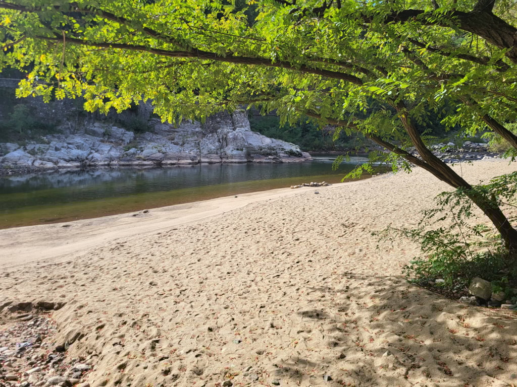 In einem kleinen Paradies, eingebettet im Herzen der Quellen und Vulkane der Ardèche, bieten wir 5 nackte Campingstellplätze von 80 m² mit Blick auf die Ardèche, in der Nähe des Spielplatzes, schattig, mit direktem Zugang zum Fluss, seinem Privatstrand und Sonnenliegen.