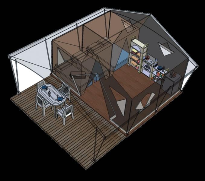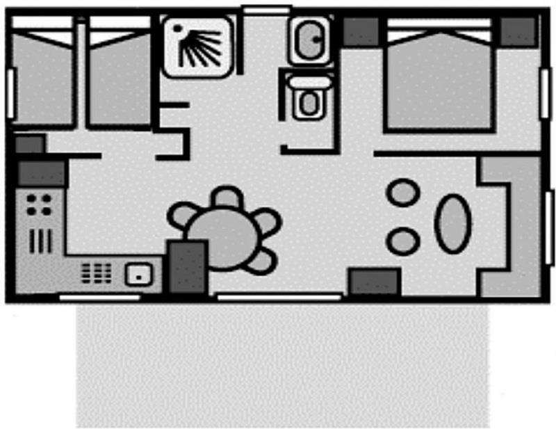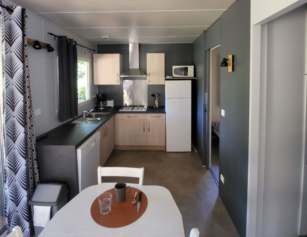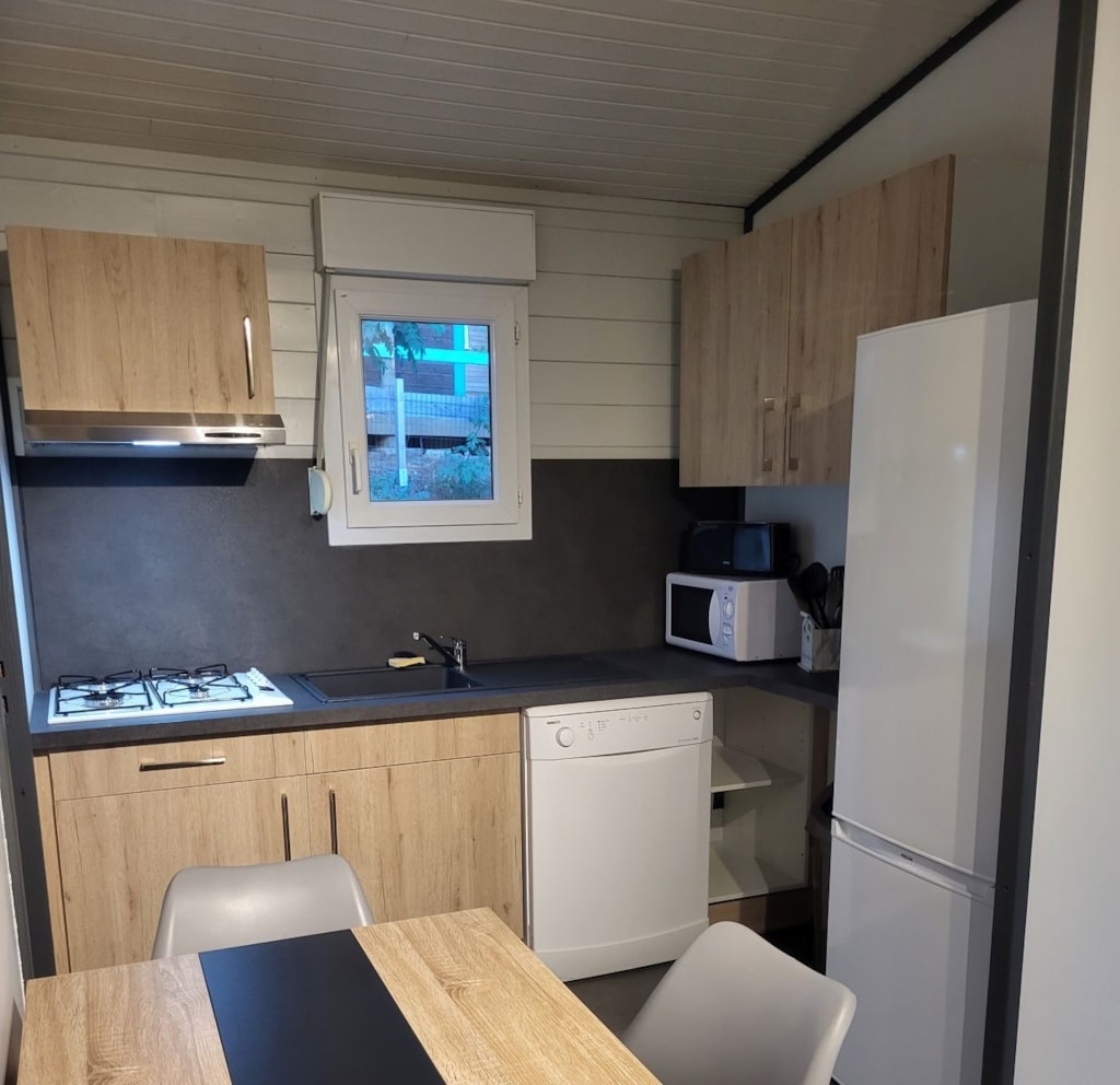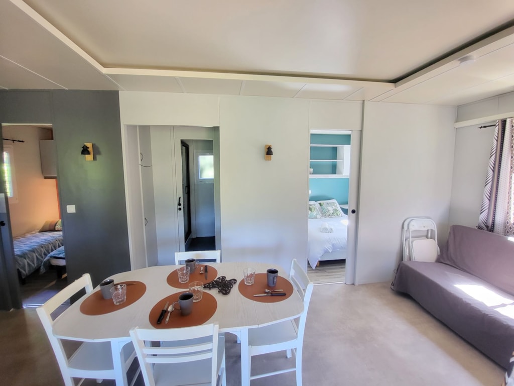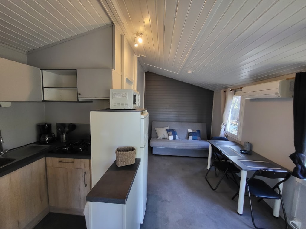 Sie werden diese neue gemütliche Art der Unterkunft séguit, voll ausgestattete Modell .. 2 Schlafzimmer 17m² für 2-4 Personen. Wohnzimmer mit Tisch-Kühlschrank Zimmer mit Doppelbett 140 * 190 und Schränke, Wohnzimmer oder Schlafzimmer 2 mit 2 Sitze, umwandelbar in 2 Einzel lesen 90 * 190 und viel Stauraum.