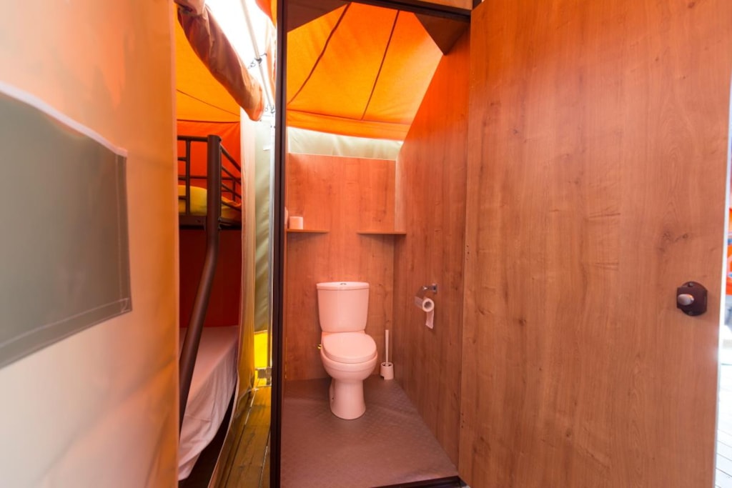 Die Zelte vom Typ Baléares (8.8m2) sind Stoffzelte mit 1 Zimmer (1 Doppelbett), Sateliten-TV und möblierte Aussenterrasse aus Holz mit Meerblick. Bettwäsche sind im Preis enthalten (Wechsel der Bettwäsche einmal die Woche).Es gibt einen Raum zum Grillen dem Kunden zur Verfügung. Perfekte Unterkunft für ein paar !!!