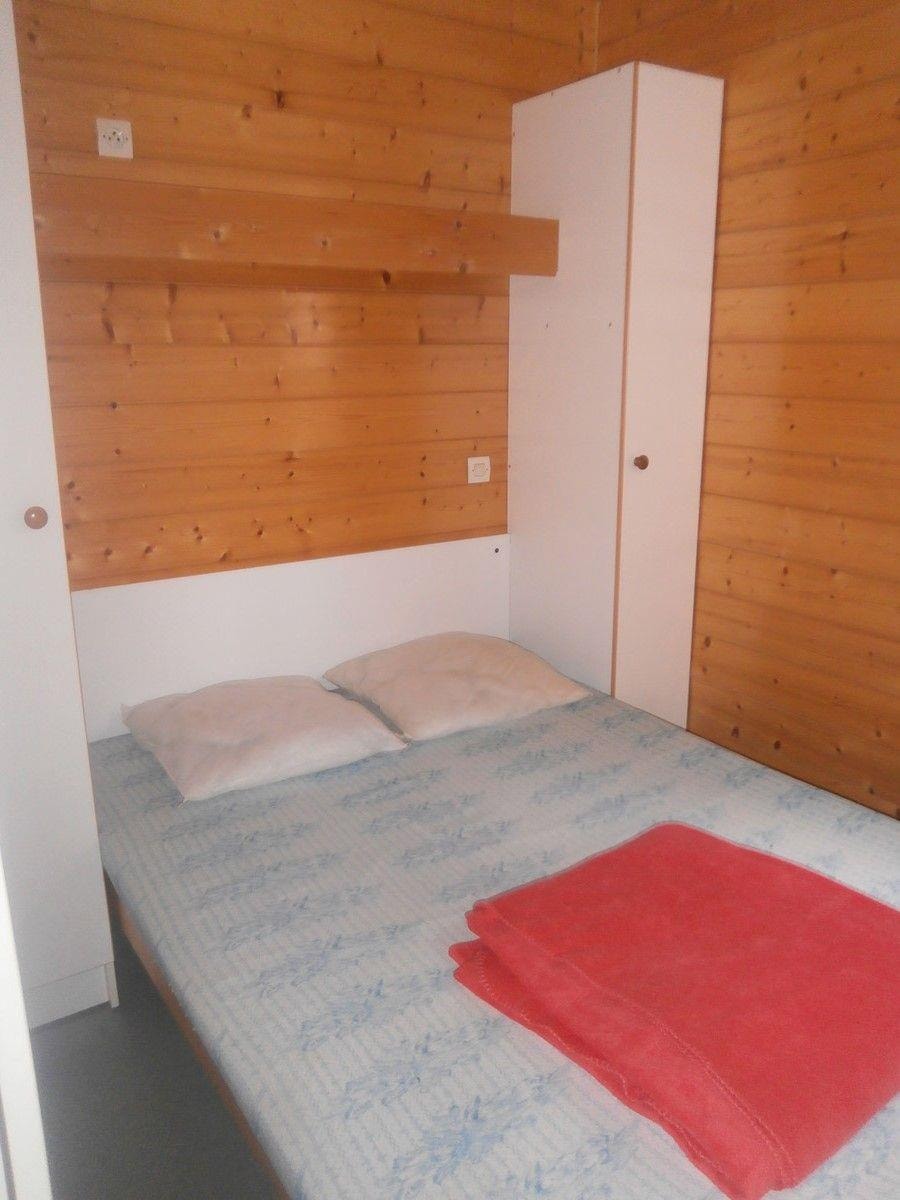 Chalet tout équipé ( 32 m² + terrasse 11 m²): vaisselle, table de cuisson, réfrigérateur, micro-ondes, cafetières électrique, salle d'eau avec WC, 2 chambres:couvertures et oreillers fournis, Terrasse couverte et salon de jardin.