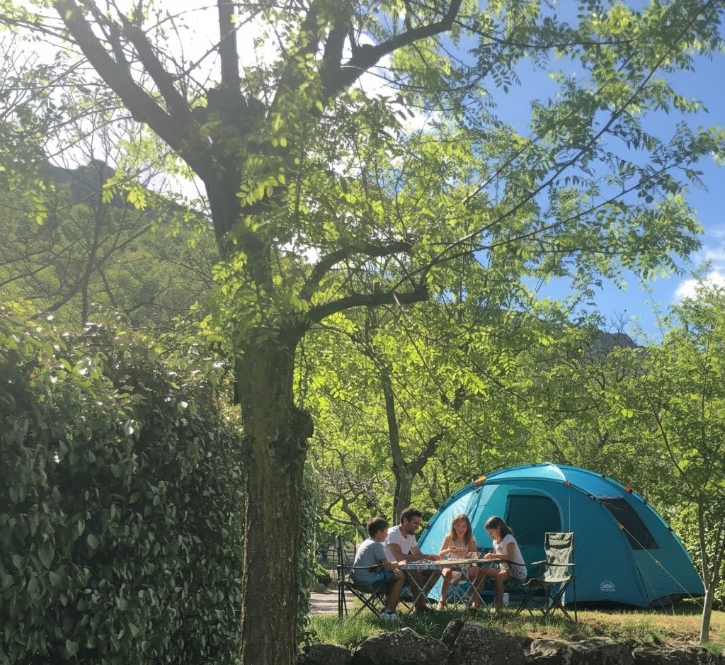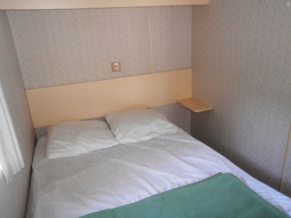 Mobil home équipé ( 15 m² + terrasse 10 m²): coin cuisine sans eau, vaisselle, table de cuisson, réfrigérateur, cafetière électrique, salon de jardin, parasol. 2 chambres, couvertures et oreillers fournis.