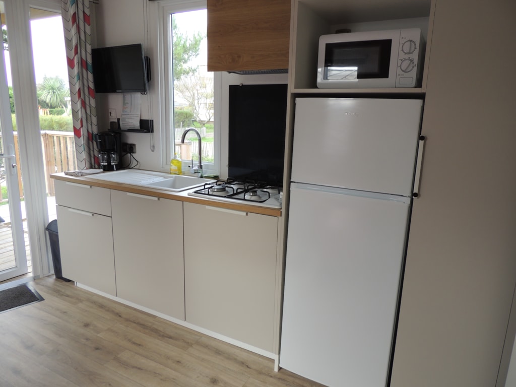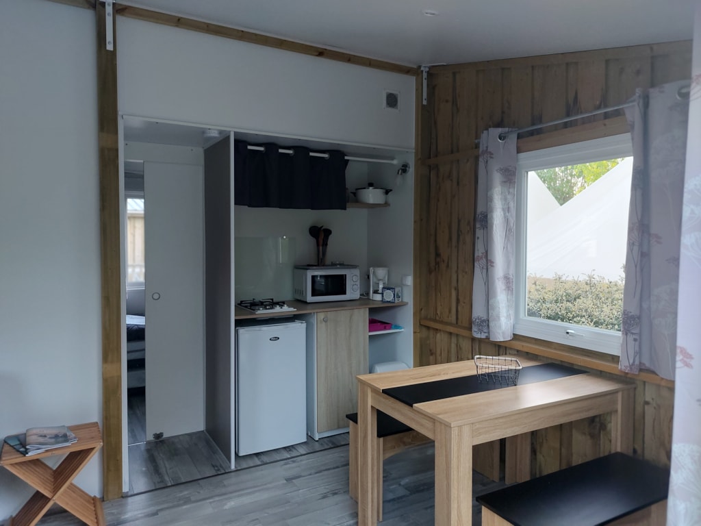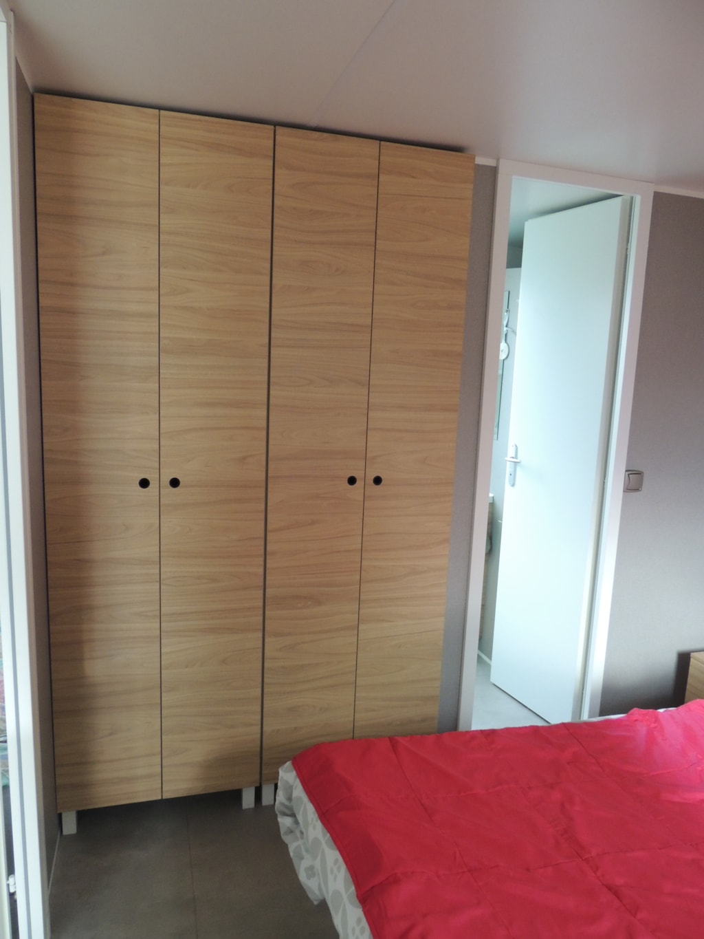 Hébergement récent, moderne et de qualité pour 5 personnes d’un minimum de 28m2 et d’une grande terrasse intégrée où vous pourrez passer un agréable moment. equipement: séjour avec cuisine équipée cafetière senséo plaque de cuisson et électroménager réfrigérateur/congélateur radiateurs électriques dans toutes les pièces rideaux occultants SDB avec sèche cheveux, WC séparés étendoir à linge télévision 1ère chambre: 1 lit 140/190 possibilité d’y installer un lit bébé, rangements, oreillers, alèses, couette 2ème chambre: 3 lits 80/190 dont un en mezzanine, rangements, oreillers, couettes et alèses