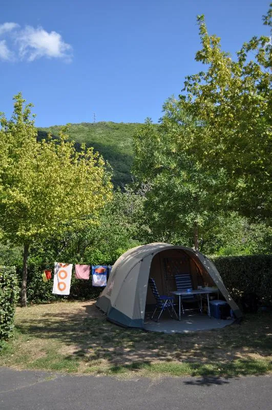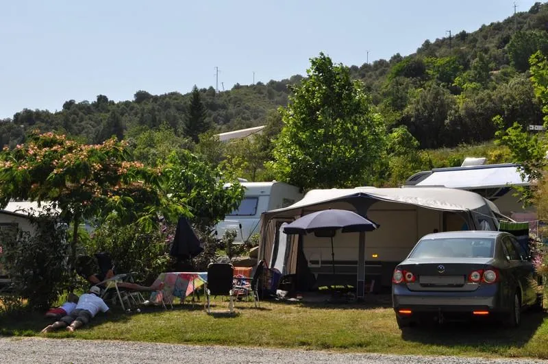 Große Plätze mit Wasser/Strom, hohe Büsche als Abgrenzung. Toller Pool. Schöne Badestelle am Fluss.