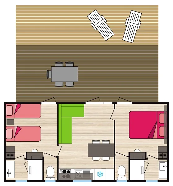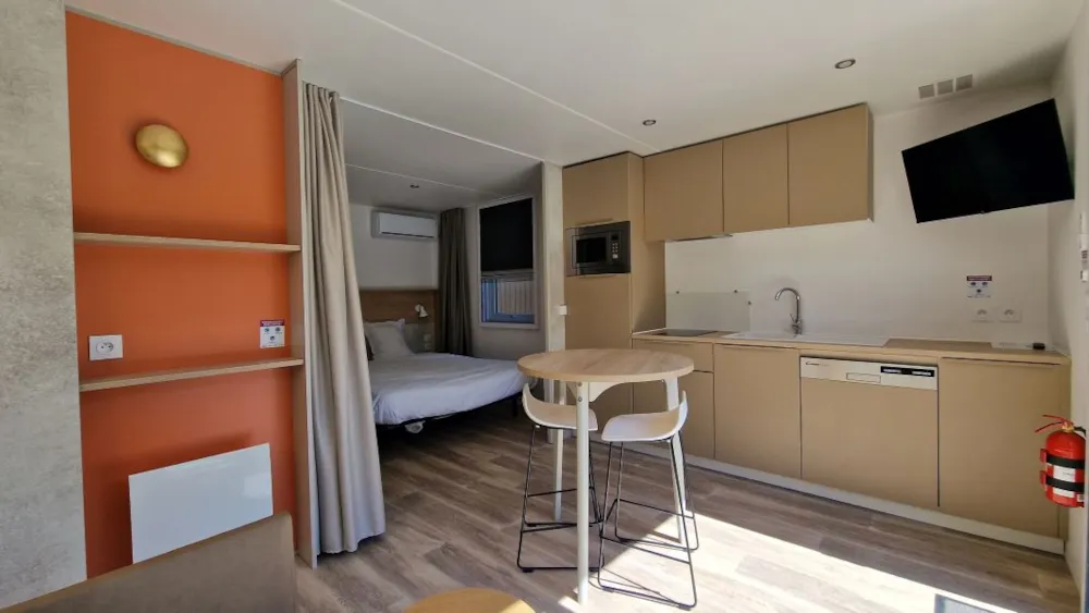 Cottage Sweet - 18m² - 1 Schlafzimmer - Schlafmöglichkeiten für 2 - Schlafsofa - Kochnische - Dusche -WC- Terrasse. Wie im Hotel: Betten bei der Ankunft gemacht! Auch Handtücher! Vermietung nachts möglich!