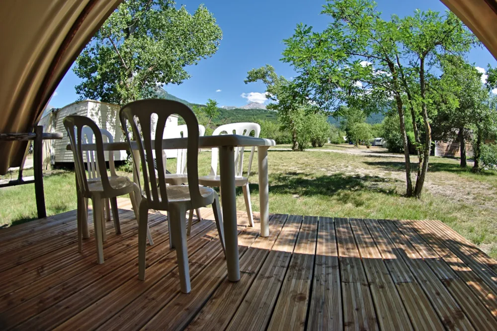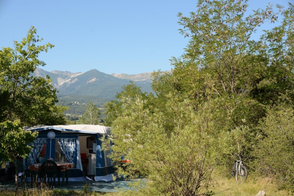 Der Campingplatz bietet 6 Chalets mit einer Kapazität von 5 Personen. Ideal, um Ihren Campingurlaub zu genießen, indem Sie den Komfort eines Landhauses finden. Blick auf die Orres und das Parpaillon-Massiv.
