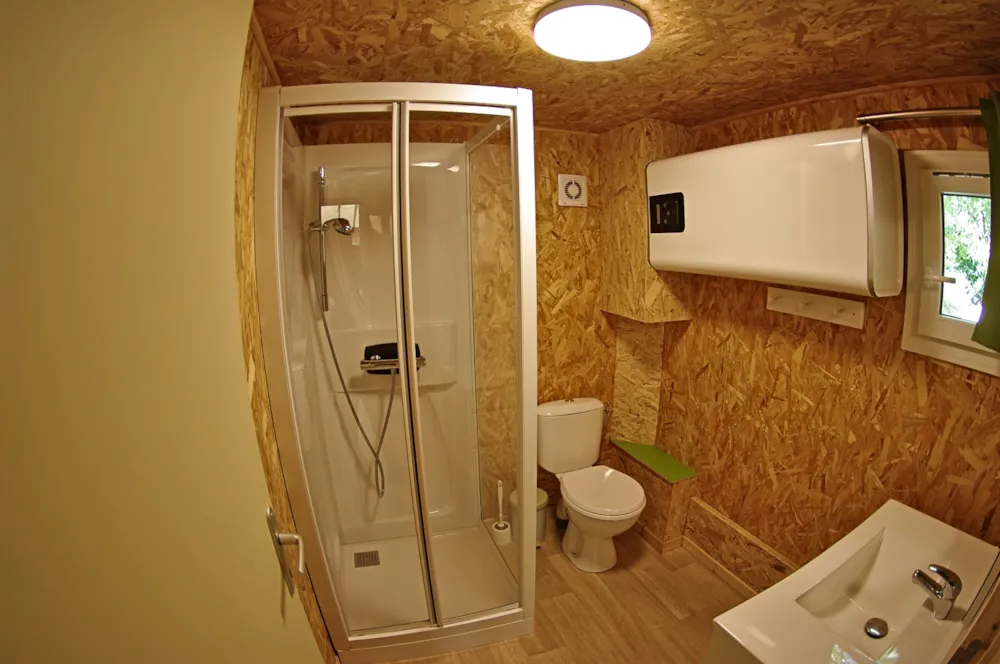 When the spirit of camping is synonymous with environmental performance and quality of life! Designed by ourselves, and made to measure by local companies, the Eco-Lodge is an innovative product with outstanding thermal comfort and sound insulation. The use of wood provides a warm and welcoming living space for a relaxing stay, and the rooms are large. The large windows simultaneously let in natural light while providing stunning views of the surrounding countryside