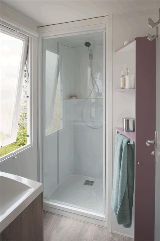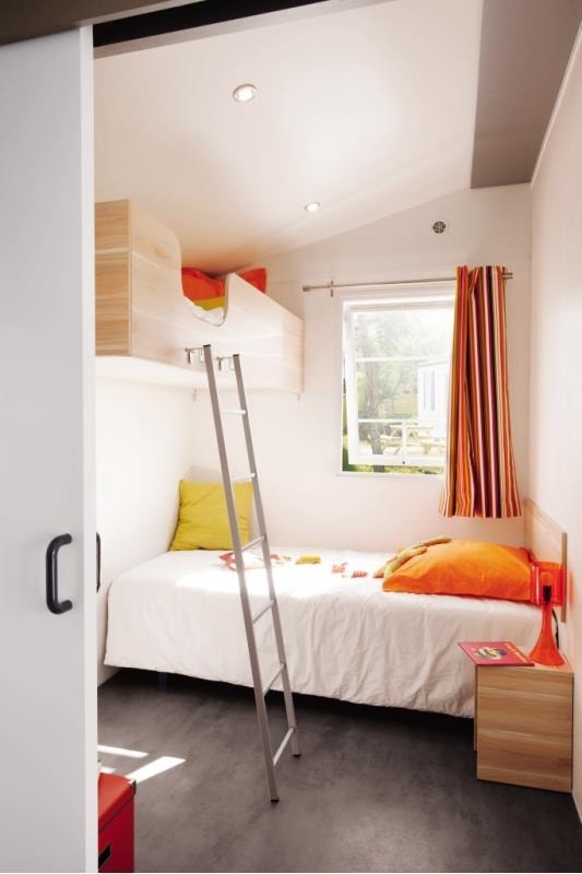 Sehr geräumig ( 32 qm ), hat das Mobilheim Premium Life alle Ausrüstungen , um Familien mit kleinen Kindern oder Menschen mit Behinderungen durch die Gewährleistung maximalen Komfort willkommen: bequem flach abfallenden Rampe für Kinderwagen und Rollstühle .