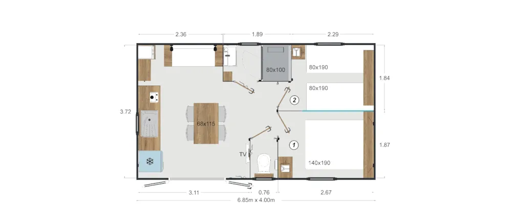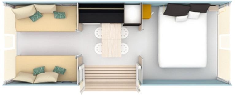 Mobilheim FAMILY, 29 m², 3 Schlafzimmer, 6 Schlafplätze.