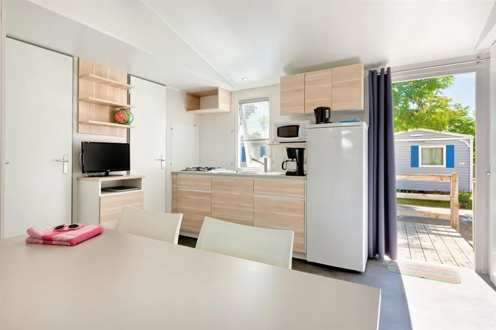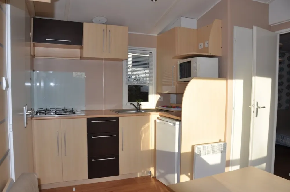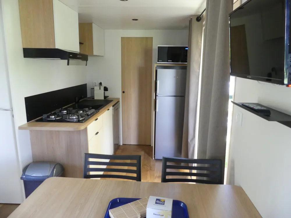 Das Mobilheim Premium Life ist das beste des Campingplatzes ausgestattet : Heizung in jedem Zimmer, Geschirrspüler, Multifunktionsofenund sogar 1 Fernseher , um Ihren Aufenthalt an seinem besten zu genießen.