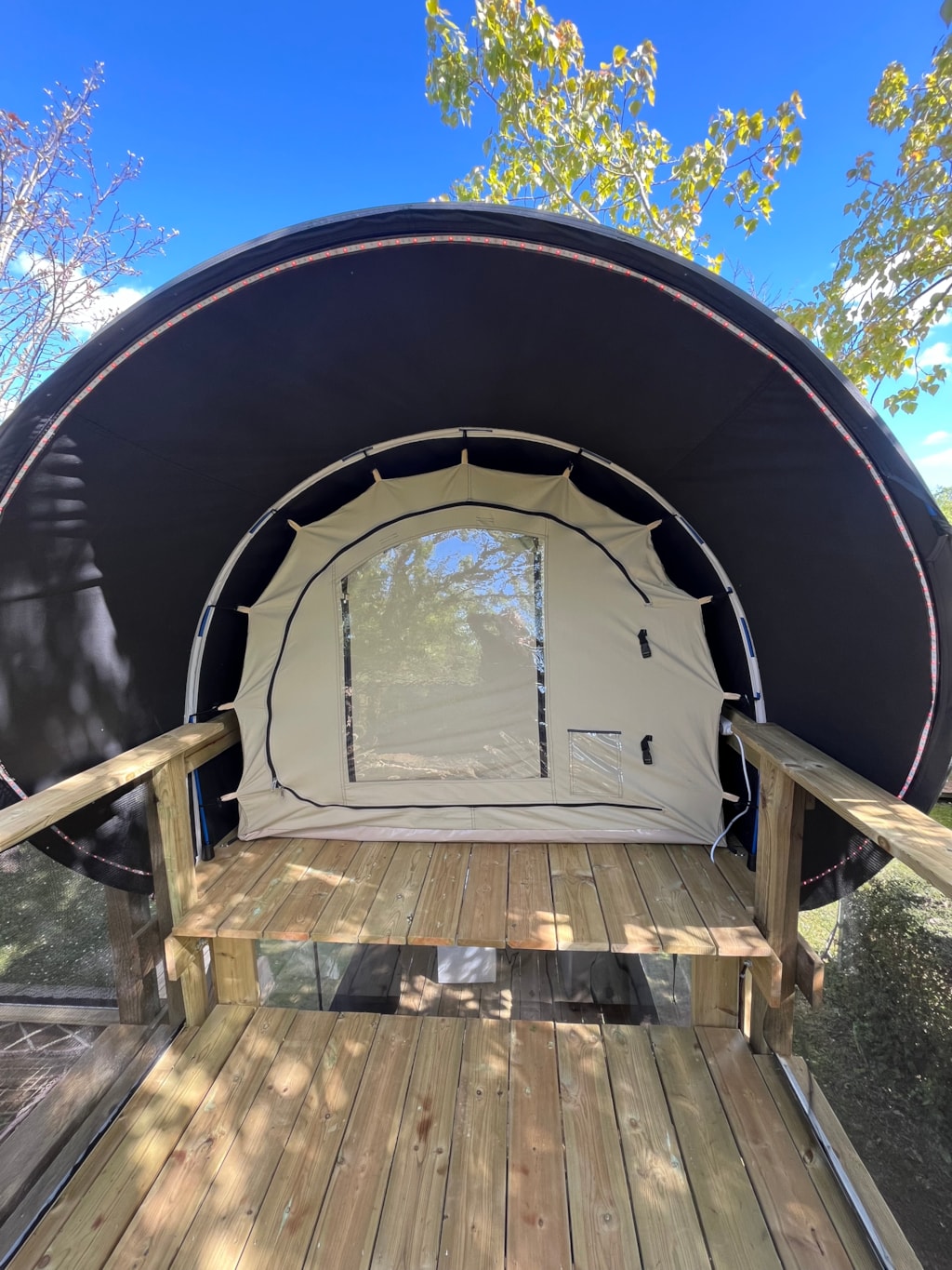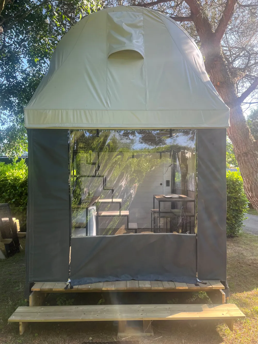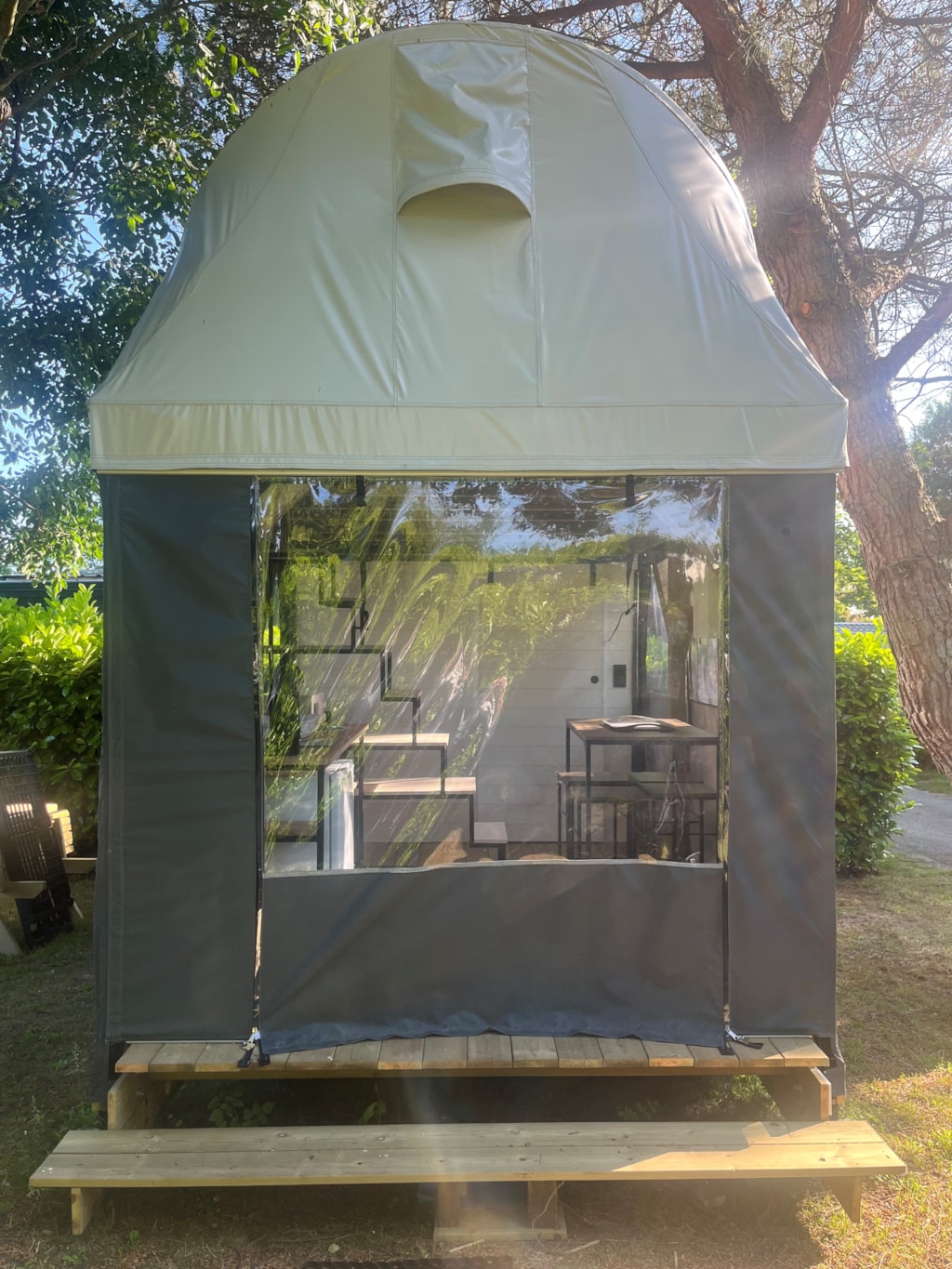 Mit seiner Konzeption aus Holz und 100% französischem Segeltuch ist diese kleine Struktur speziell für Natur- und Campingliebhaber konzipiert.