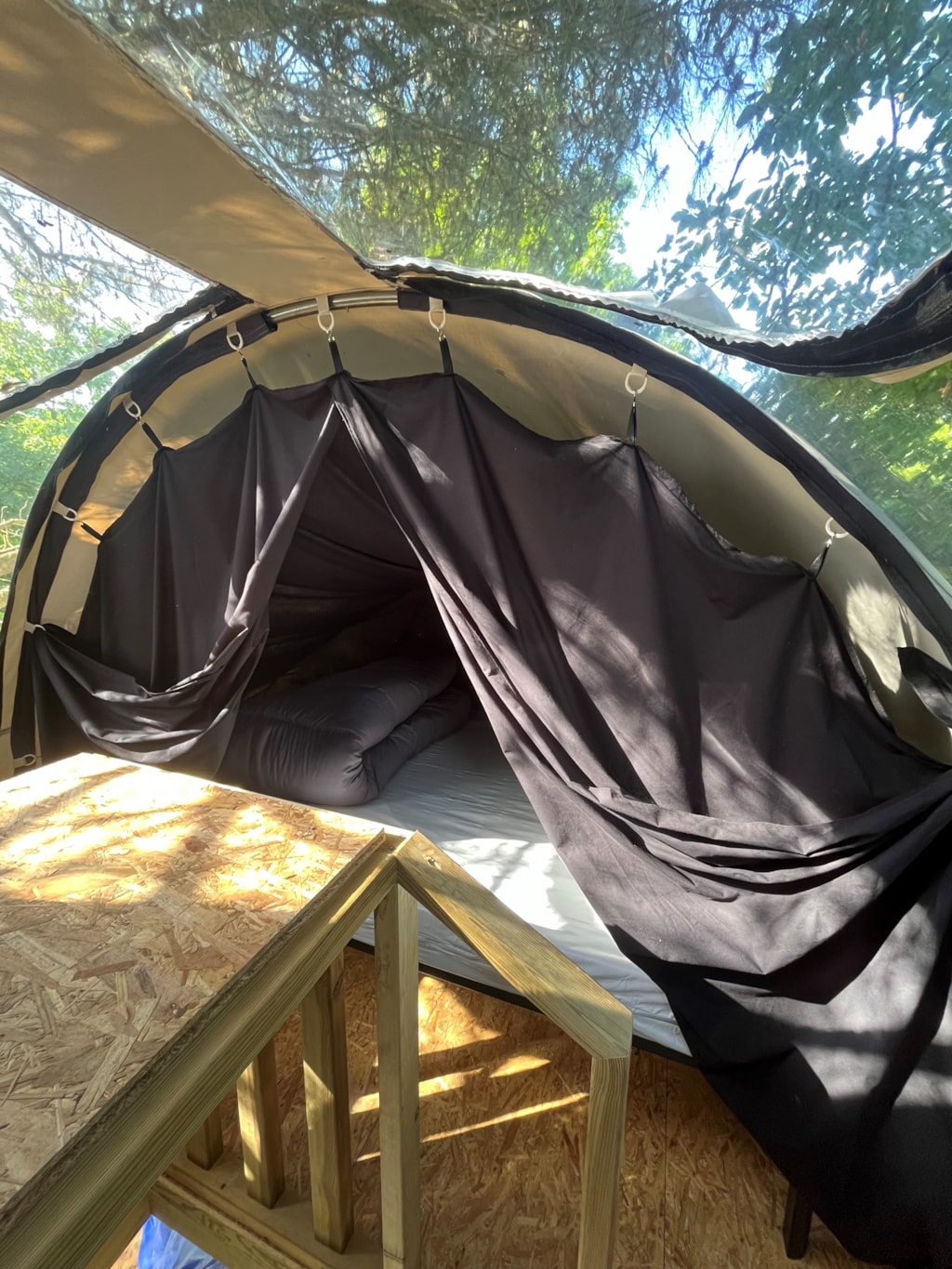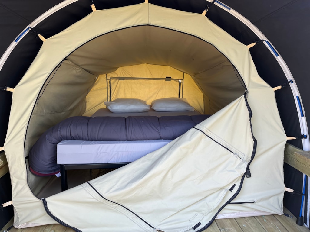 Die D'Tentes DKbane verfügen über Moskitonetze mit Innenklappen mit Reißverschluss im Schlafbereich, die für absolute Privatsphäre und Dunkelheit sorgen.