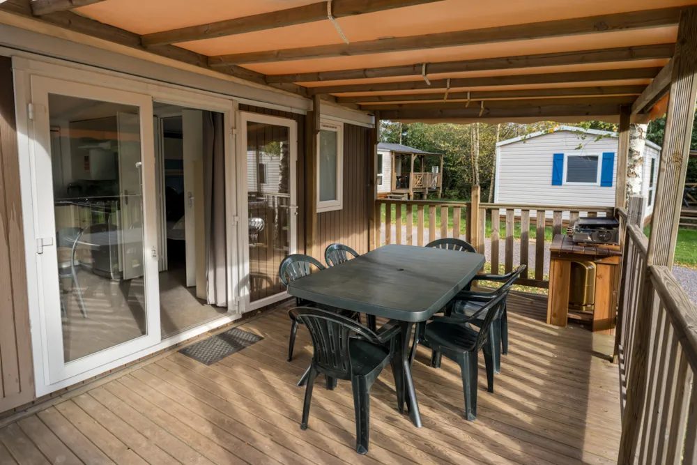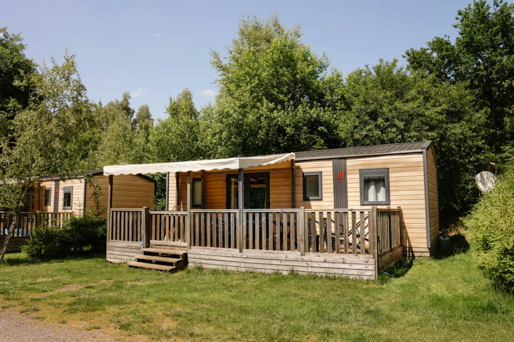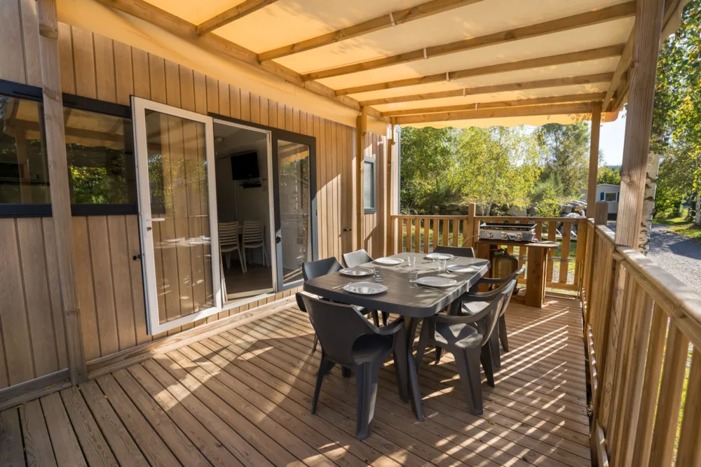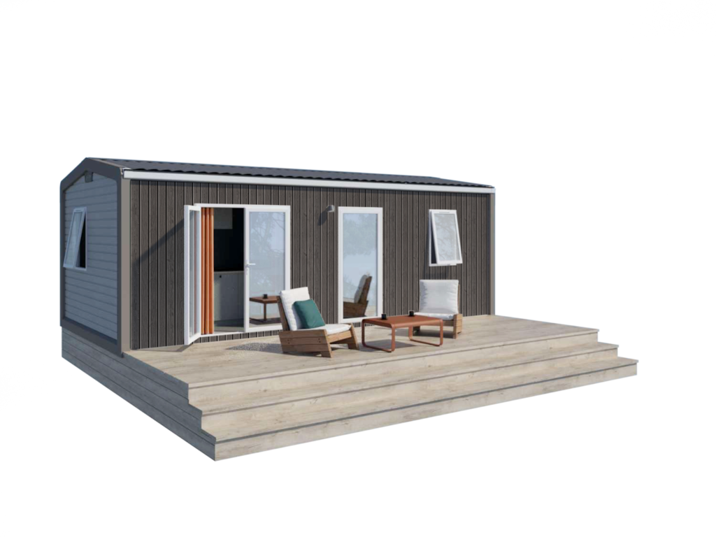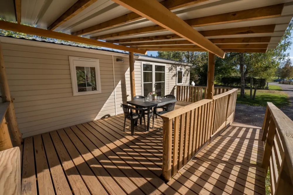 Das geräumige und moderne Mobilheim Premium Sérénité bietet allen Komfort für einen gelungenen Familienurlaub in den Vogesen. Dank seines großen Wohnbereichs und seiner halbüberdachten Terrasse können Sie Ihren Aufenthalt bei jedem Wetter in vollen Zügen genießen.