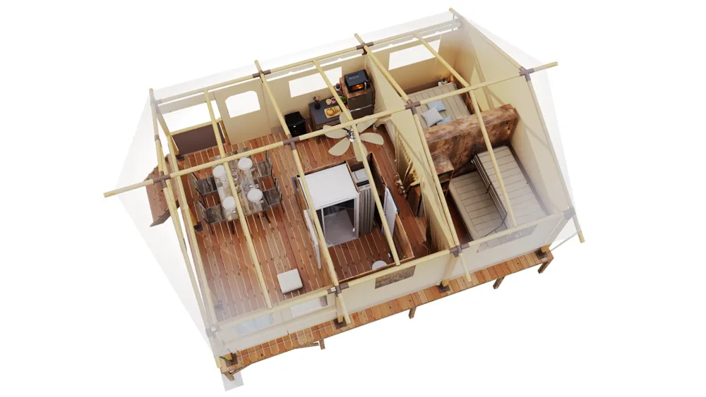 Die Safari-Zelte bieten ein einzigartiges Erlebnis, das Komfort und Natur verbindet. Diese geräumigen und stilvollen Unterkünfte sind ideal für Familien und bieten: