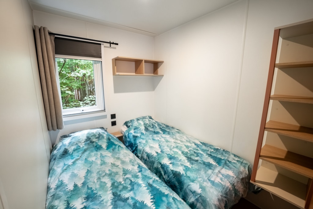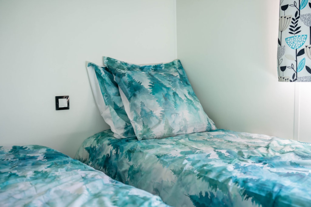 • 2 Schlafzimmer mit zwei Einzelbetten 80 x 190 cm und Stauraum