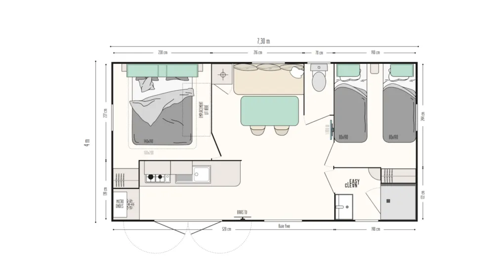 Dieses Mobilheim verbindet Komfort und Funktionalität für einen erholsamen Urlaub inmitten der Natur. Es ist ideal für eine Familie mit bis zu 4 Personen und verfügt über alles, was Sie für einen angenehmen Aufenthalt in den Vogesen benötigen.