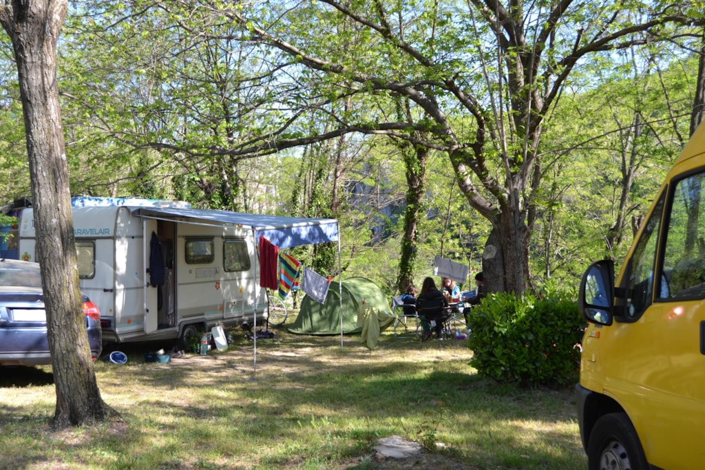Lots of shade under the trees, near to the cliff wall and the river, swimming is great, landscape is just awesome, we have been here many times and will surely come back. Very clean and modern facilities and extremely friendly and helpful landlords. This is holiday in France at it's very best. Thanks again for the wonderful time.