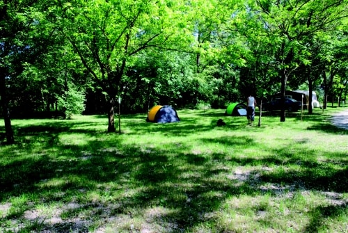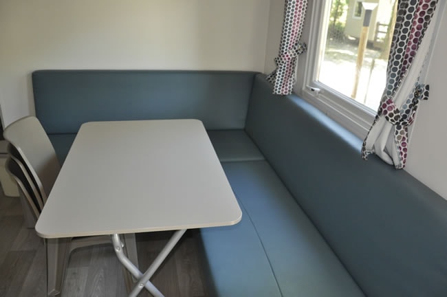 mobil-home avec 2 chambres coin cuisine canapé convetible