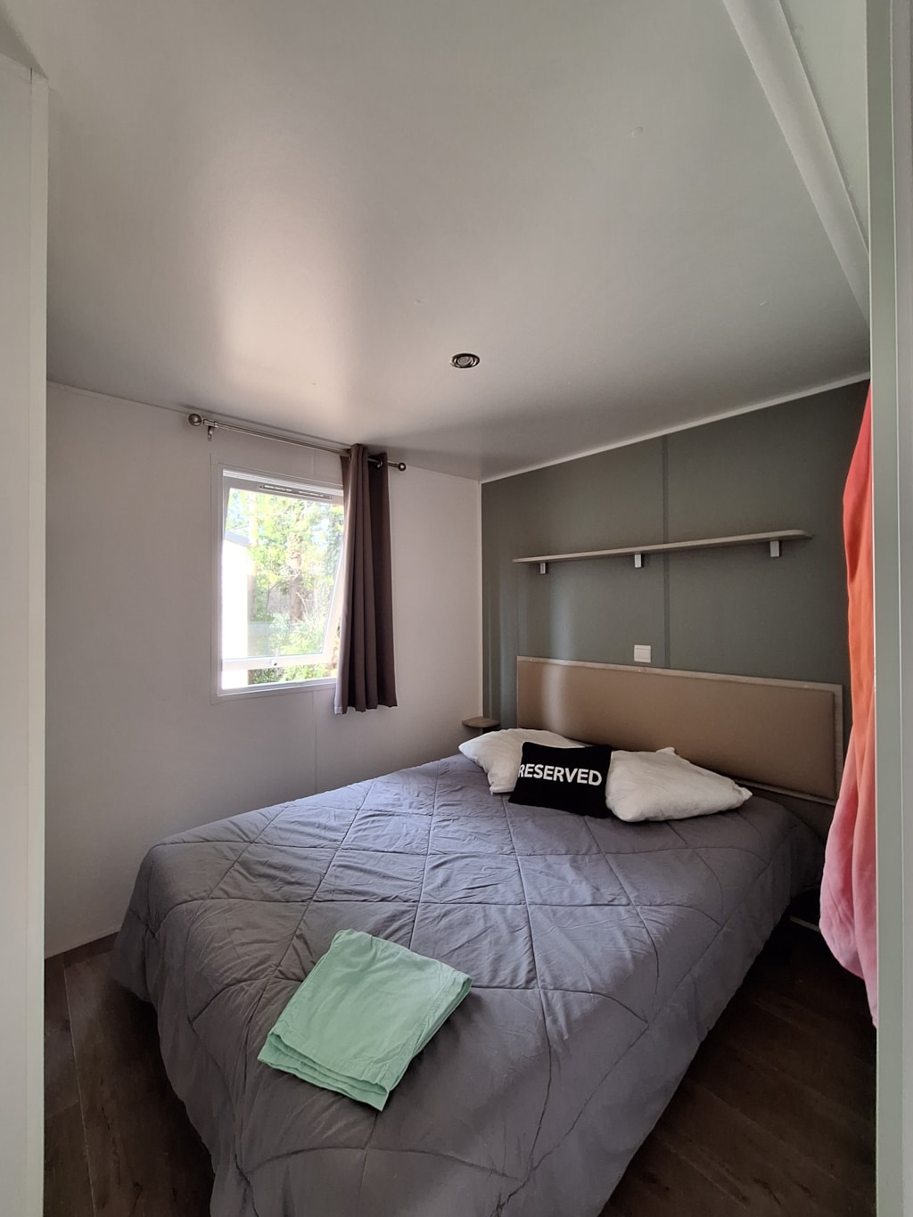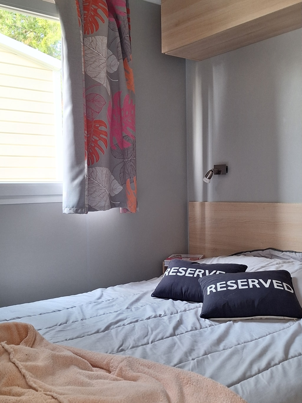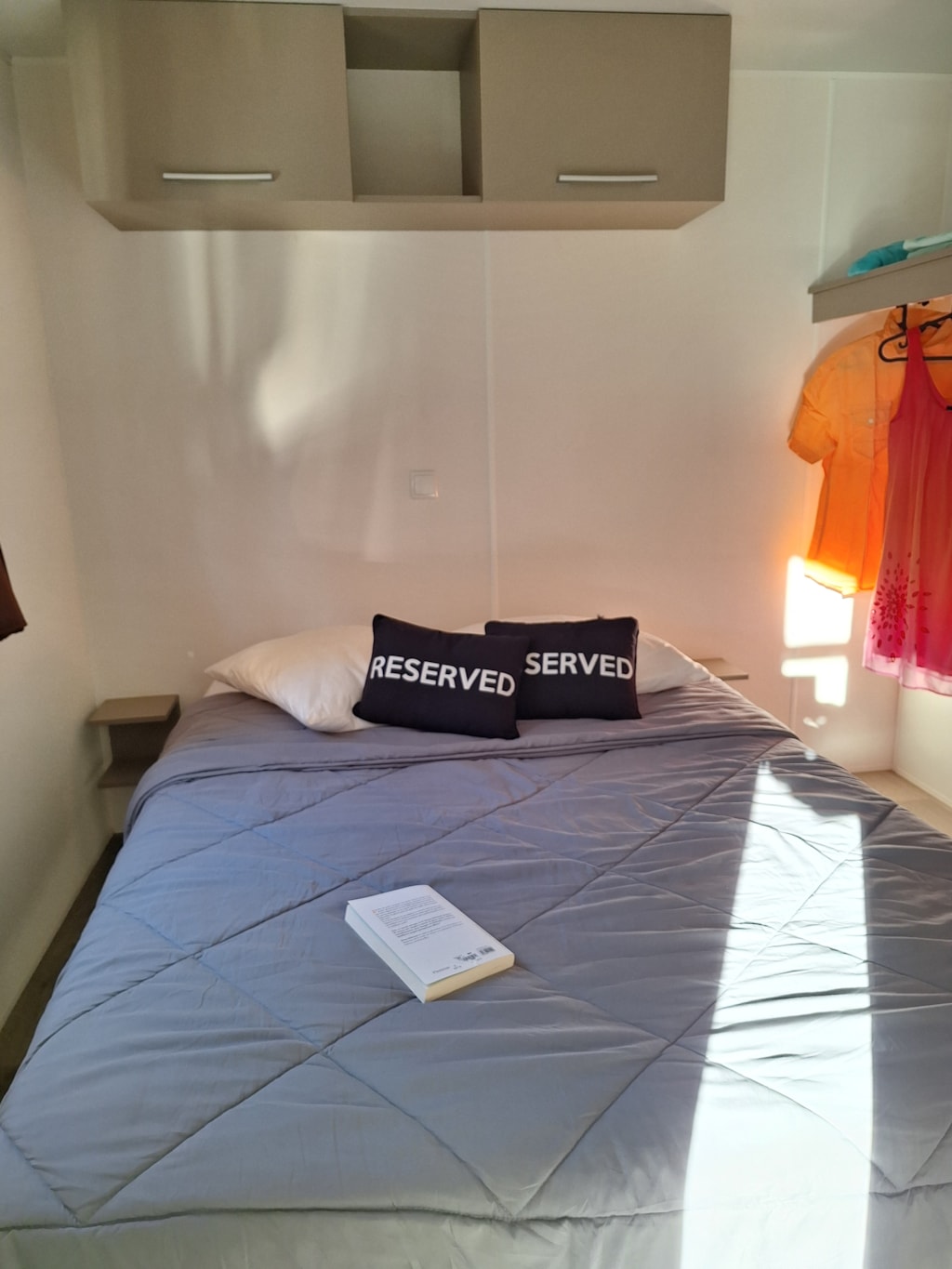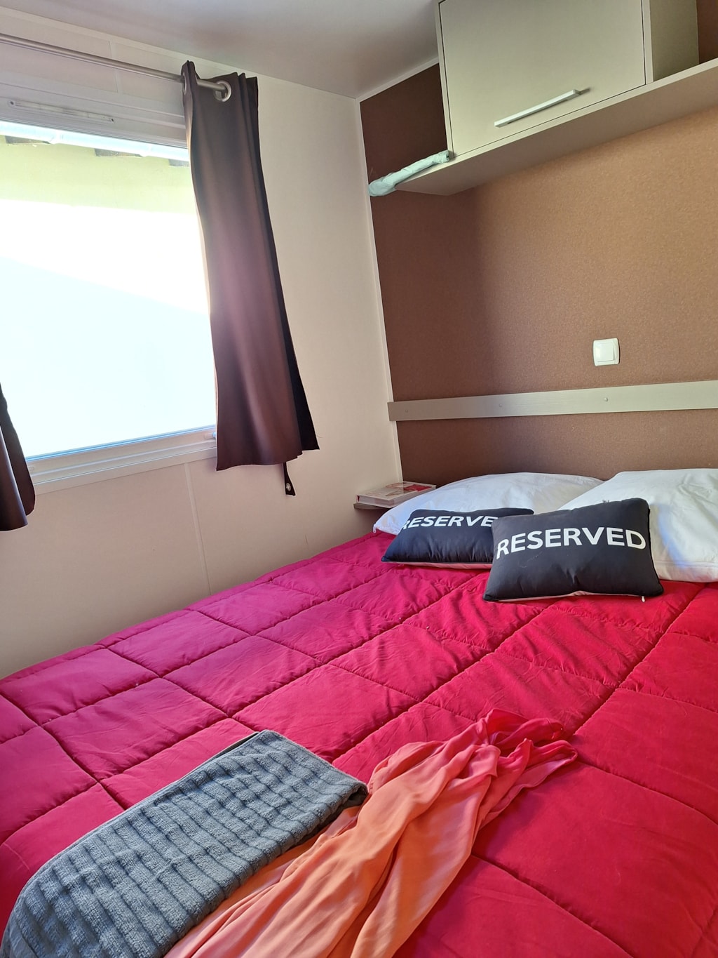 Mobil-home standart CLIMATISE 2 chambres cafetiére électrique+boulloir+micro-onde les couvertures et les oreillers sont fournis terrasse couverte les draps et les serviettes ne sont pas fournis. le ménage est à votre charge les lits ont les tailles standart .