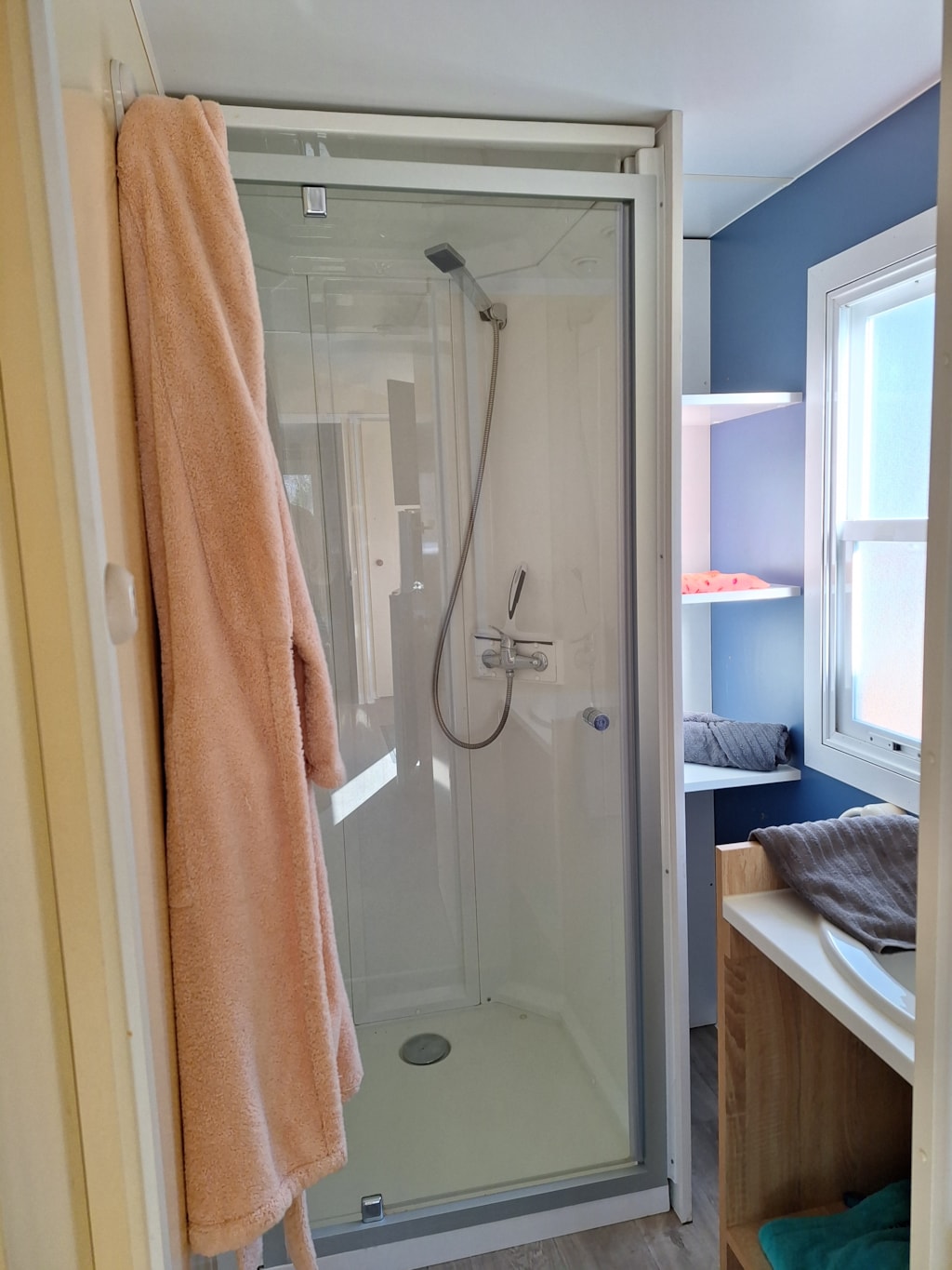 mobil-home CLIMATISE 3 ans 2 chambres coin cuisine sympa canape convetible . cafetiére electrique standart boulloir micro ondes .grand refrigérateur les couvertures et les oreillers sont fournis le petit plus la douche est spacieuse terrasse couverte. pas de climatisaseur tv en option la taille des lits sont standart