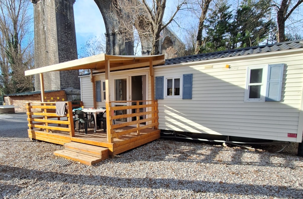 Mobil-home connfort 5 pers CLIMATISE 2 chambres dont une 3 lits Coin cuisine Terrasee couverte