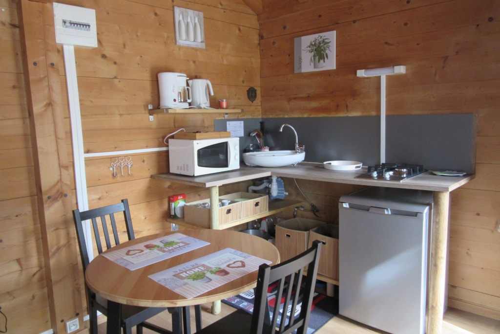 Wenn Sie sich vom Campingleben angezogen fühlen, aber Ihren persönlichen Komfort schätzen, ist die Naturhütte ohne Sanitäranlagen die ideale Unterkunft für Sie! Verbringen Sie als Paar, mit der Familie oder mit Freunden einen Urlaub im Zeichen der Geselligkeit auf einem Campingplatz in den Hautes-Alpes, in einer Naturhütte für 4 Personen.
