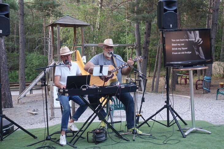 Unsere Stellplätze „mit Aussicht” bieten einen freien Blick auf die Berge und Felder, die unseren Campingplatz umgeben.