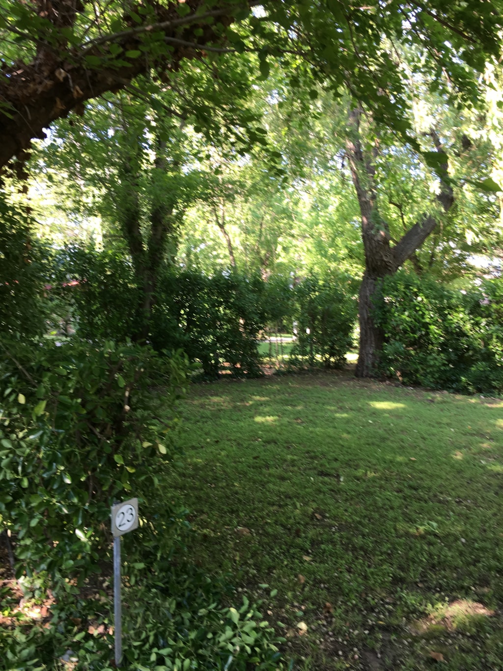 Ein großer, schattiger und auch sonniger Stellplatz für unseren VW-Bus, der mit Sträuchern zum Nachbar abgetrennt ist. Sanitäre Anlagen immer sauber und Duschen immer warm. Großer Pool mit Liegen und teilweise Schirme ist super gepflegt.