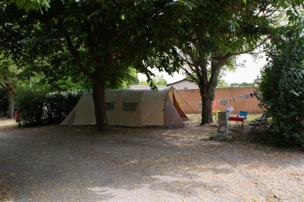 emplacement de 80 a 120m2 plat et avec herbe comprends l electricite