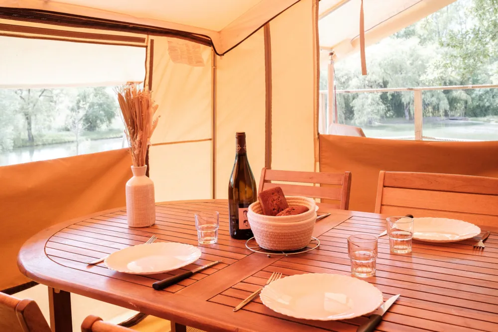 Entdecken Sie die Dordogne auf eine andere Art und Weise und übernachten Sie in unseren Lodge-Zelten in Séveilles, mitten in einer geschützten Naturlandschaft. Zwischen Teich und Wald erleben Sie eine einzigartige Atmosphäre im holzigen Safari-Stil – ideal für Glamping-Liebhaber. Jede Lodge verfügt über eine großzügige Terrasse, komfortable Schlafzimmer und einen gemütlichen Wohnbereich für gemeinsame Momente inmitten der Natur.