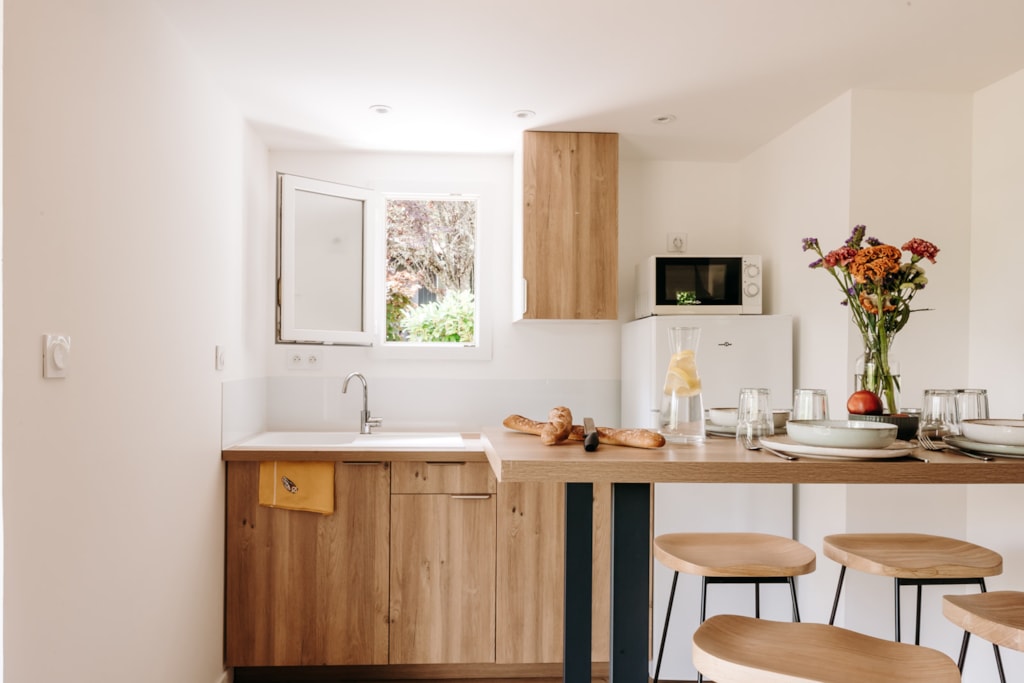 Ideal für bis zu 4 Personen bietet das Chalet geräumige Schlafzimmer, ein helles Wohnzimmer und eine voll ausgestattete Küche, in der Sie Ihre Mahlzeiten ganz unabhängig zubereiten können. Genießen Sie die Terrasse mit Gartenmöbeln für entspannte Morgen- und Abendstunden im Rhythmus der Natur oder entdecken Sie die typischen Dörfer, Schlösser und Märkte des Périgord.