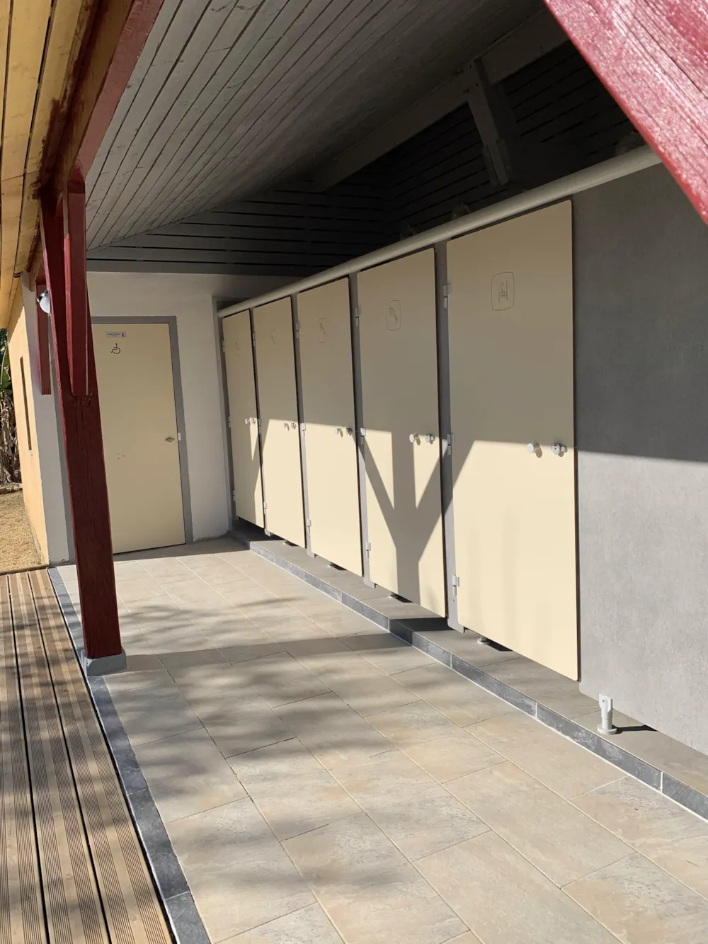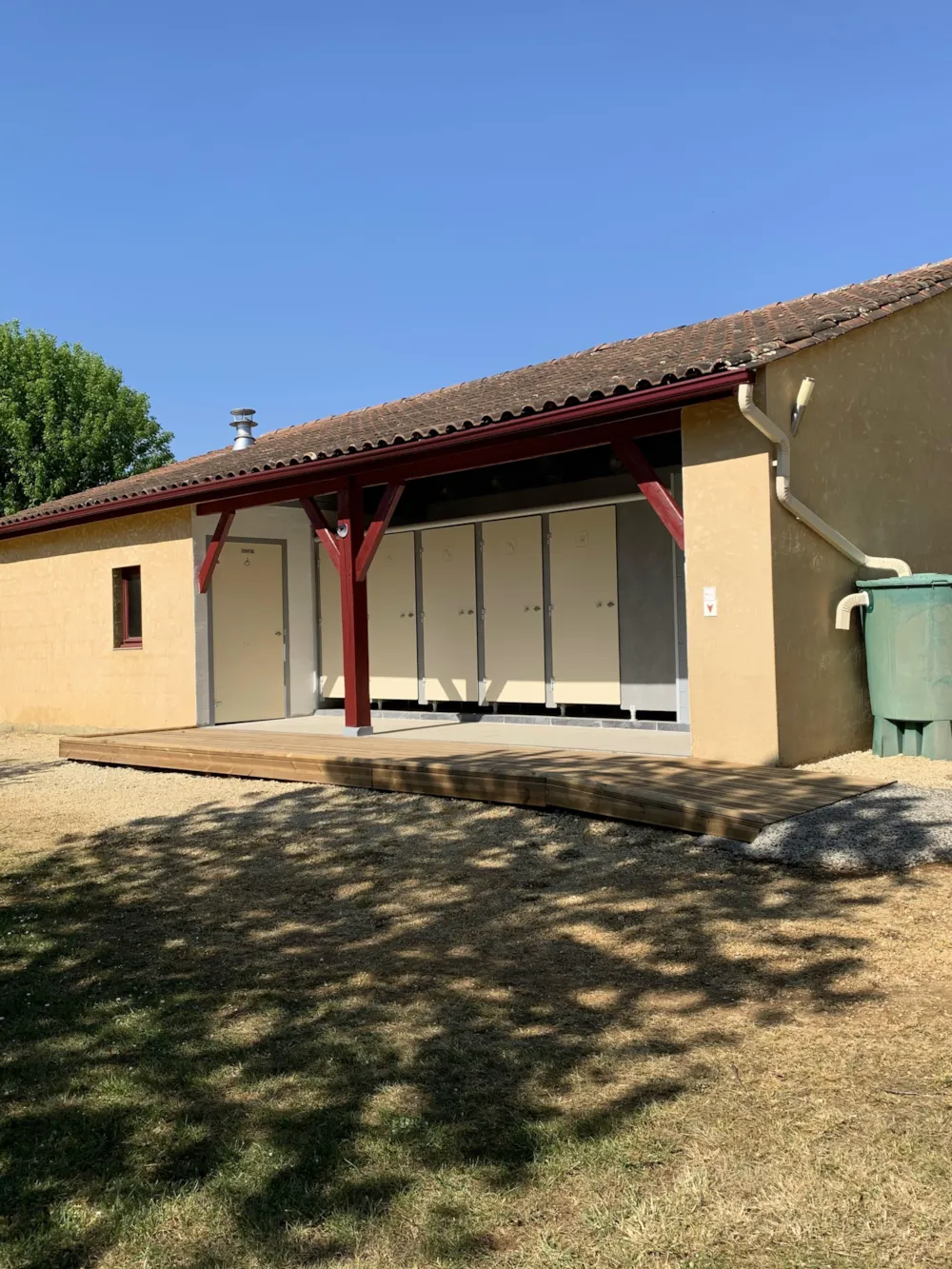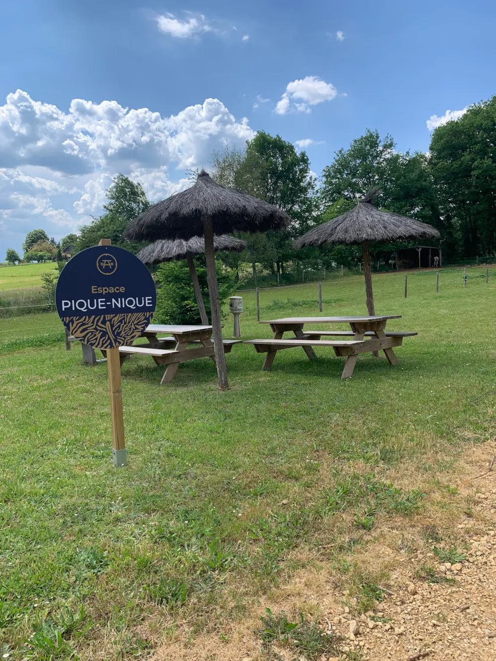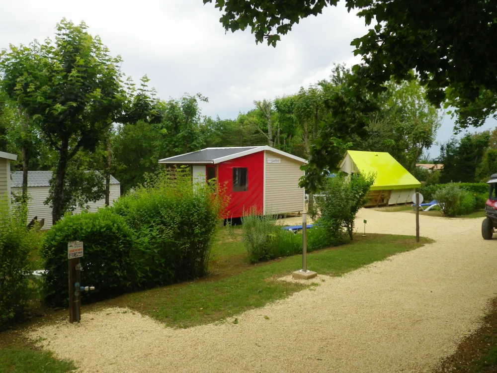 Elle se trouve sur un emplacement confort 6 personnes avec électricité une terrasse couverte,une plancha, un frigo,table, chaises . Idéale pour des marcheurs, cyclistes,motards,et en complément de couchages pour un van aménagé,tente,caravane .....