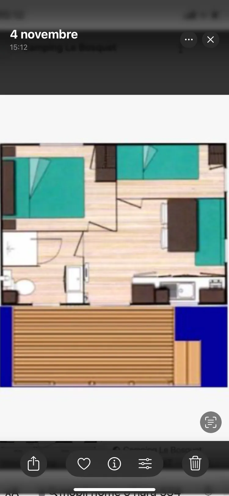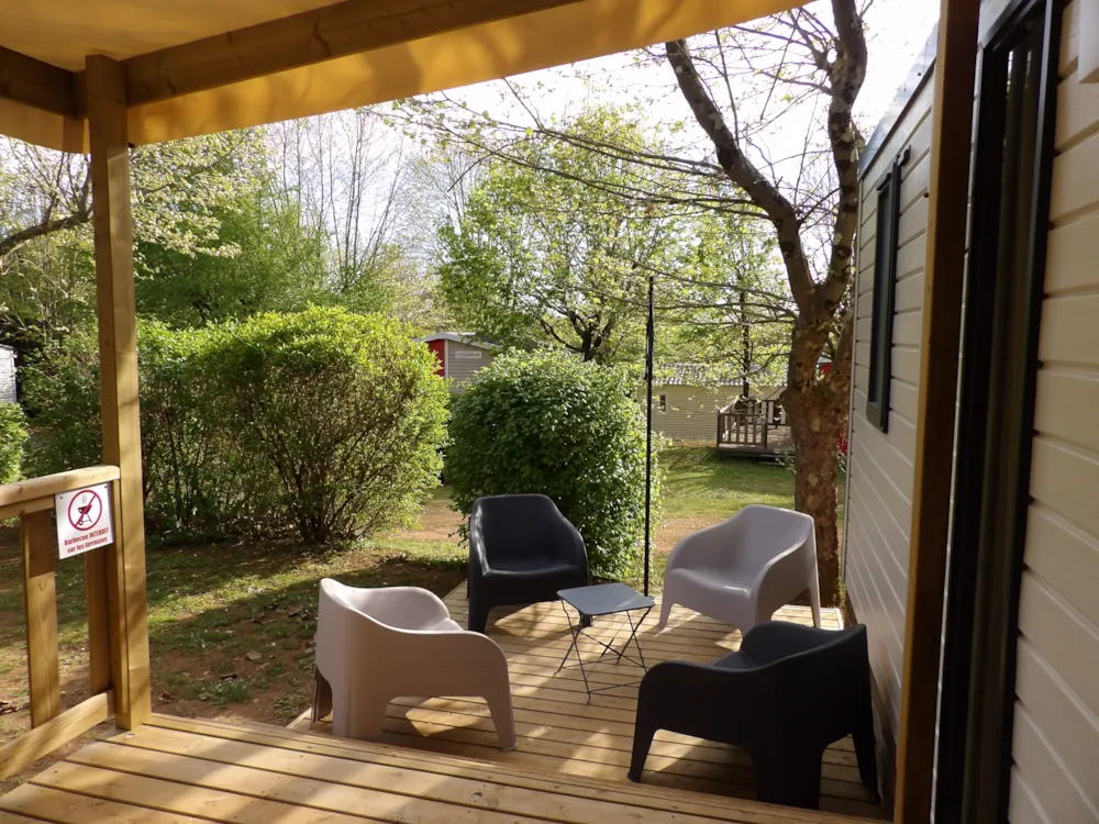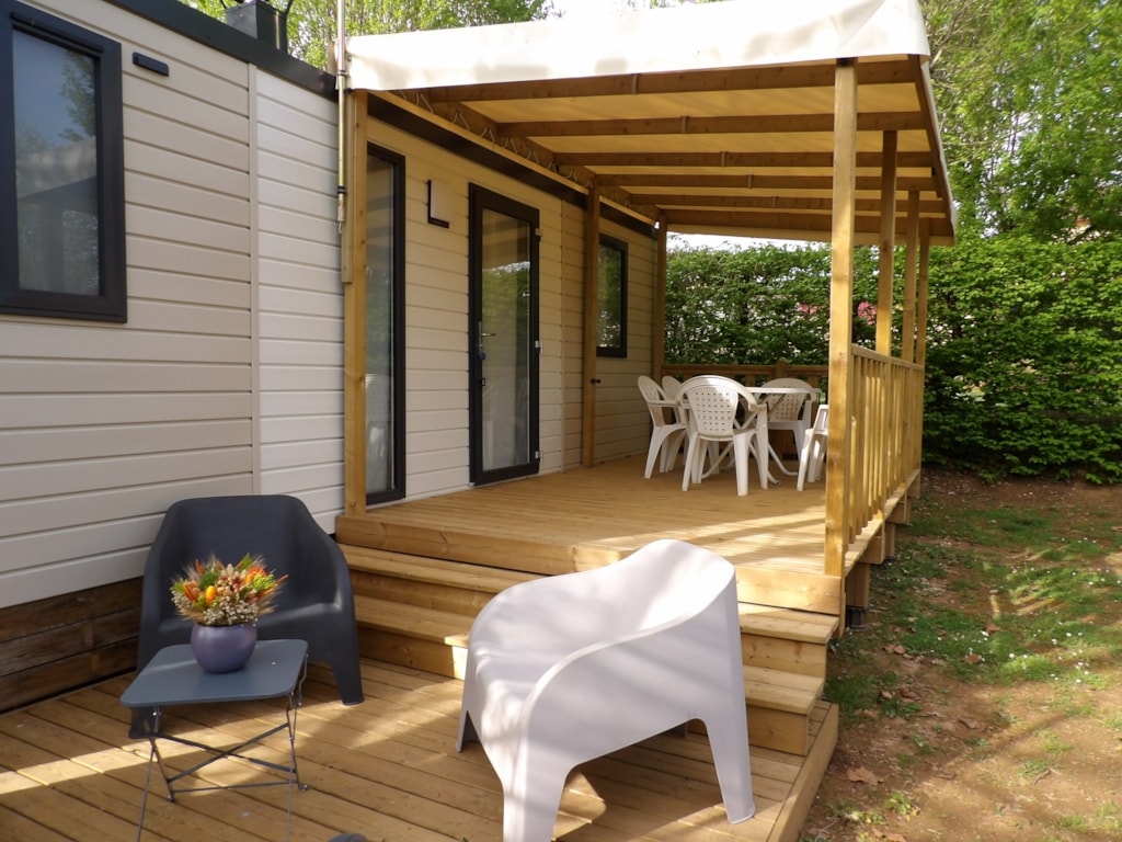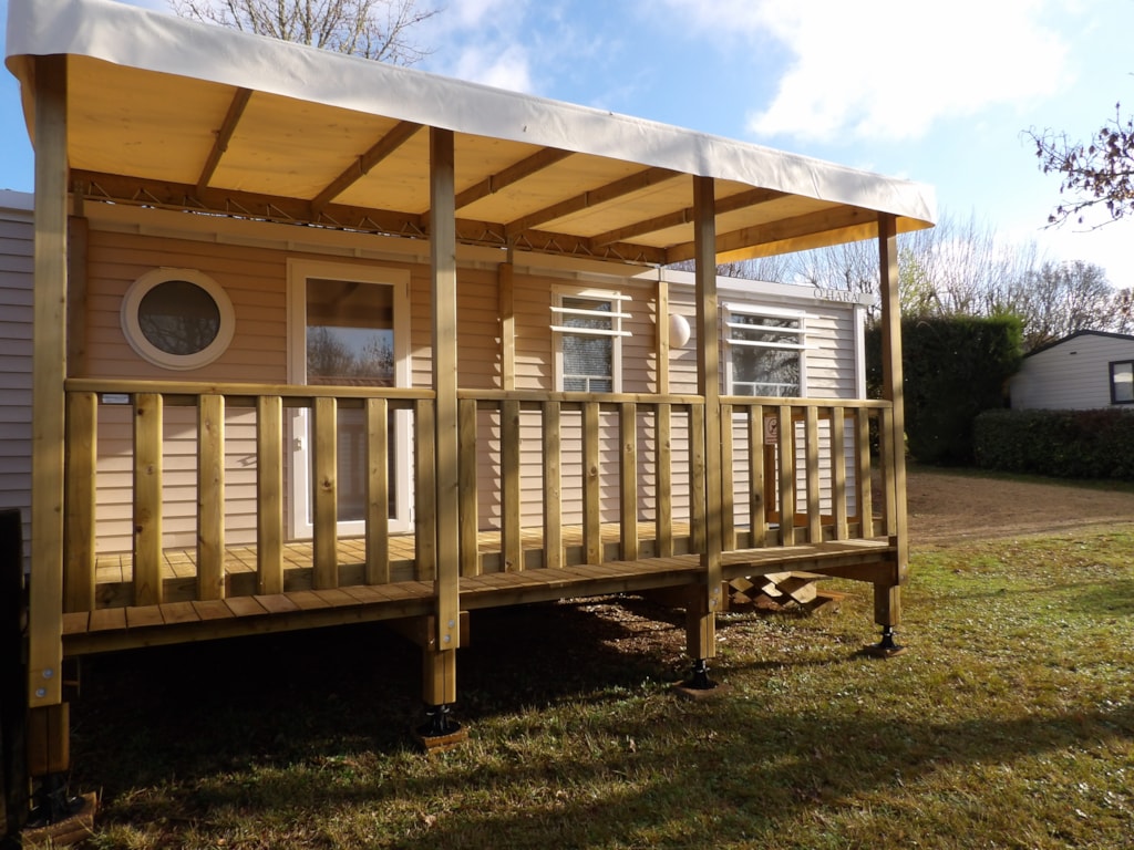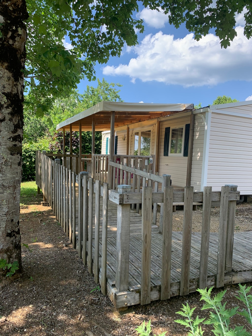 Le Mobil home Grand Confort dispose de 2 chambres , la 1 ère avec un lit de 160x190 , la 2ème chambre 2 lits 70x190 ,1 banquette lit pour la 5 ème personnes. Une cuisine avec un grand frigo + freezer , gazinière, micro onde,TV, cafetière à filtres, la vaisselle pour 5 personnes , 1 salle de bain avec lavabo, douche . Un toilette séparré et une terrasse couverte avec le salon de jardin.