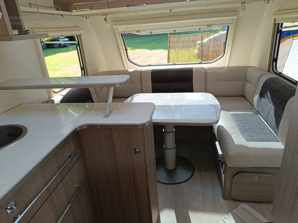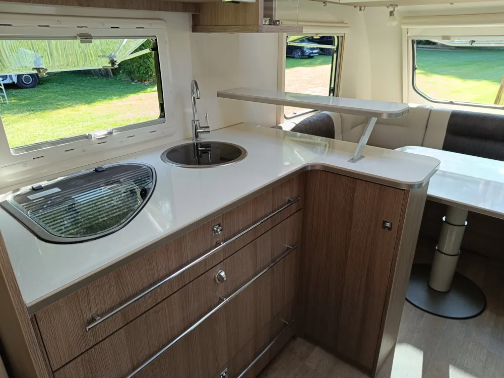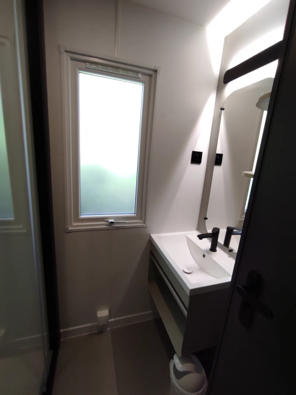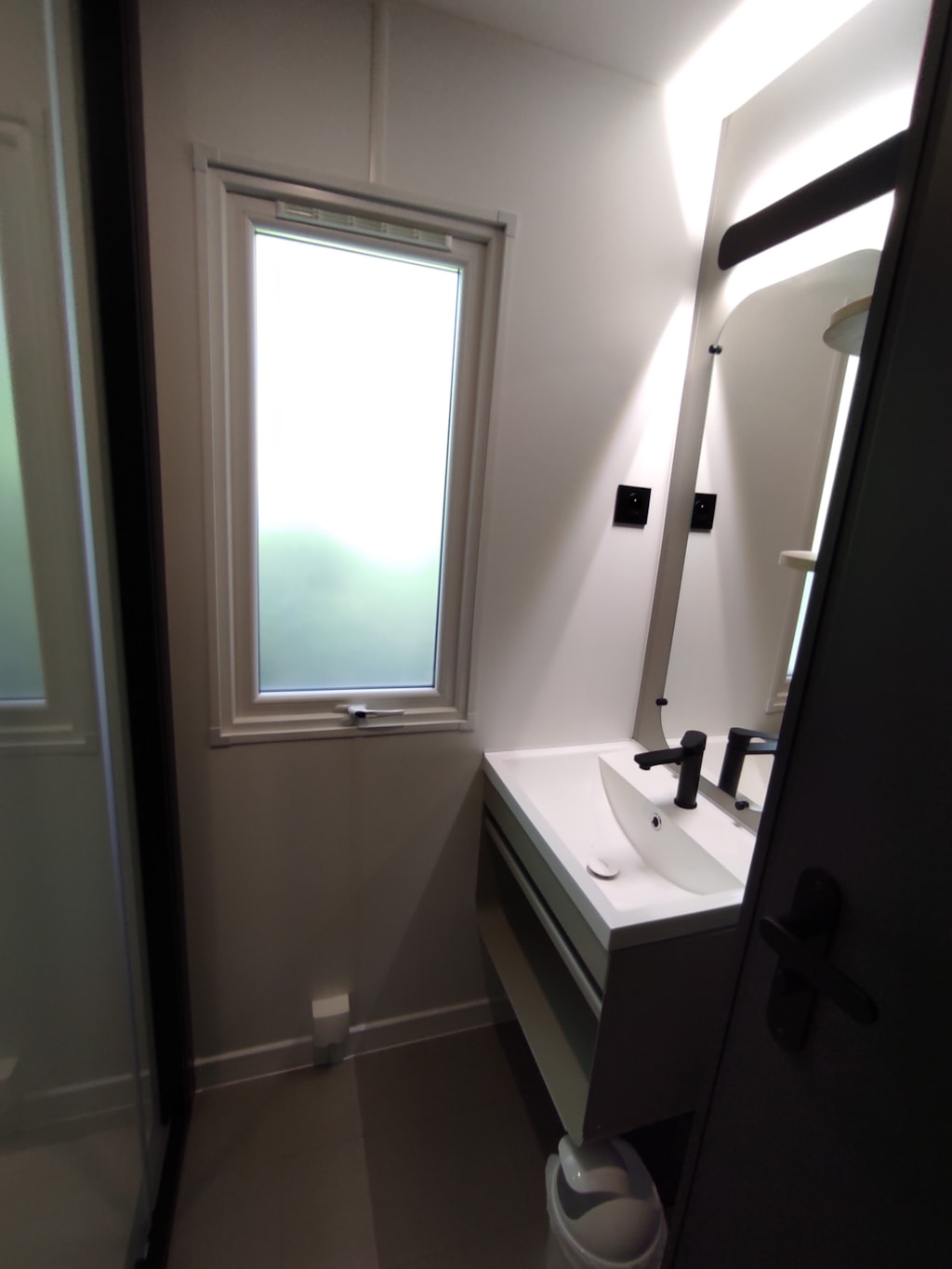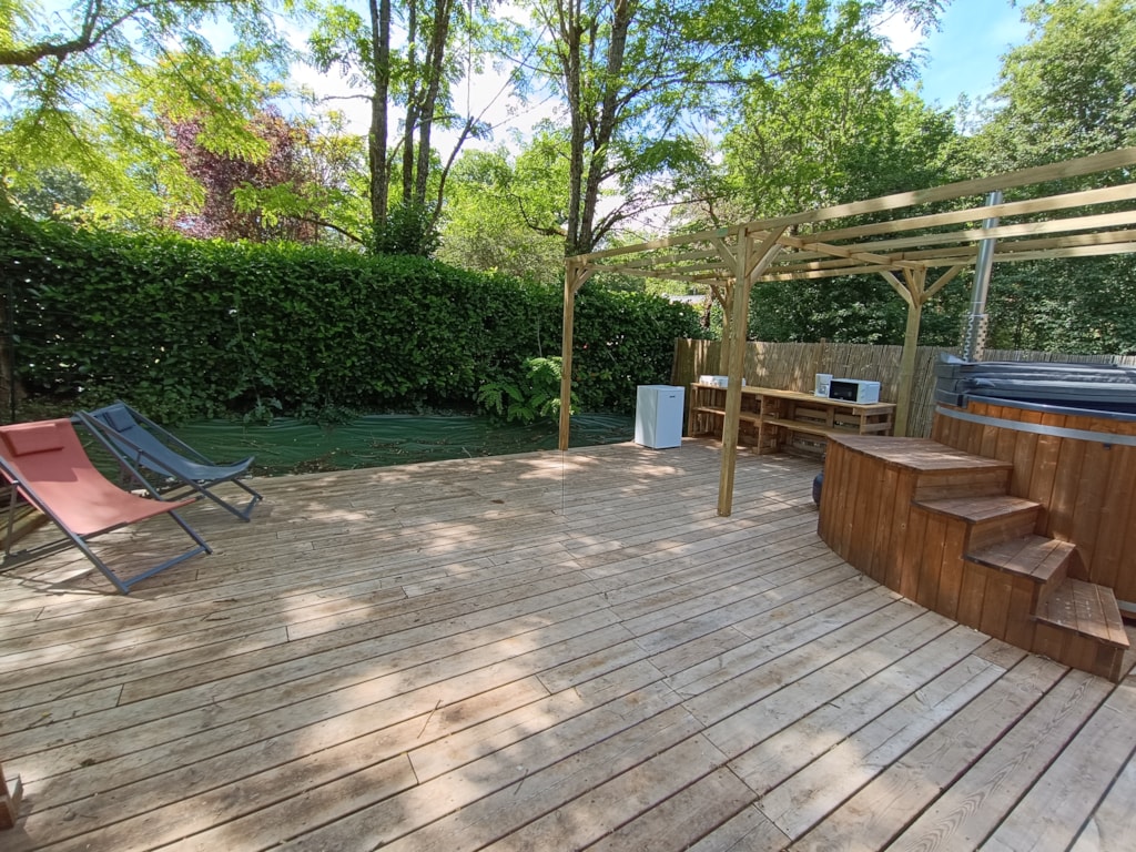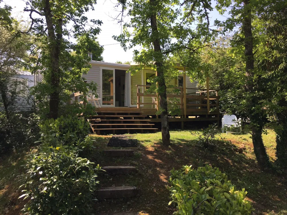 Grand Mobil'home O'hara avec grande terrasse et TV incluse. Îlots centrale et coin salon. 3 chambres; salle de bain équipé d'un sèche cheveux.
