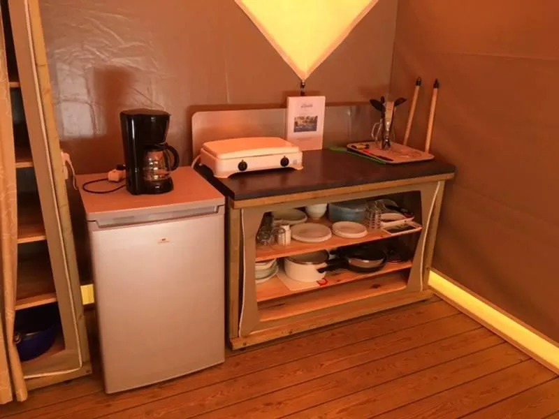 équipé de 5 couchage, cuisine,vaisselles,frigo top et salon de jardin