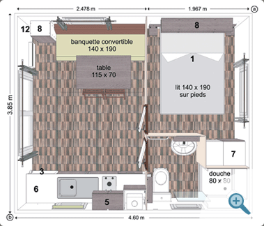 XL Grand Confort Caravane Pitches with a surface area of an average of 120m² with electric hook-up (16 A), water and sewage on the pitch. Quiet pitch with shadow