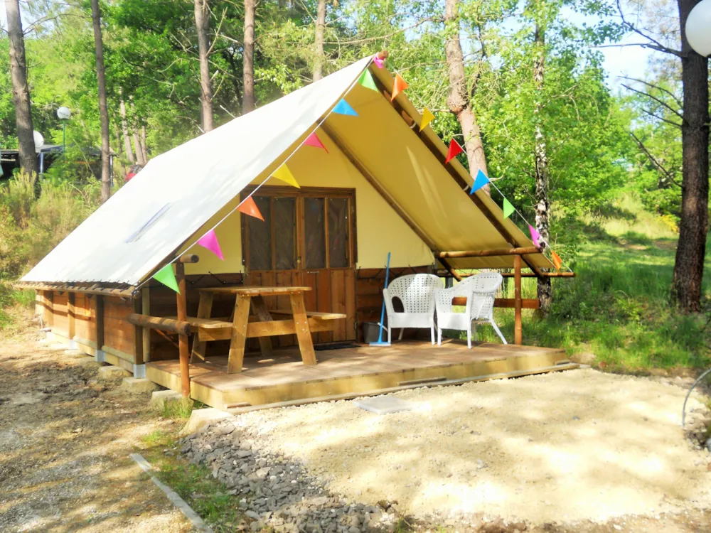 Wood and canvas Safari tents on the edge of the pond, furnished and equipped with 25 m² of living space and a lovely 15 m² covered terrace.