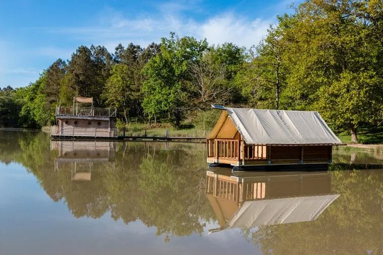Vivez vos vacances à fleur d'eau dans notre Flo'tente, nid flottant sur l'eau, et prélassez vous sur la petite terrasse en regardant les carpes sauter.