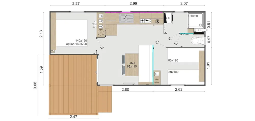 The basic price includes the 80-100 m² pitch + 2 people + 6A electricity.