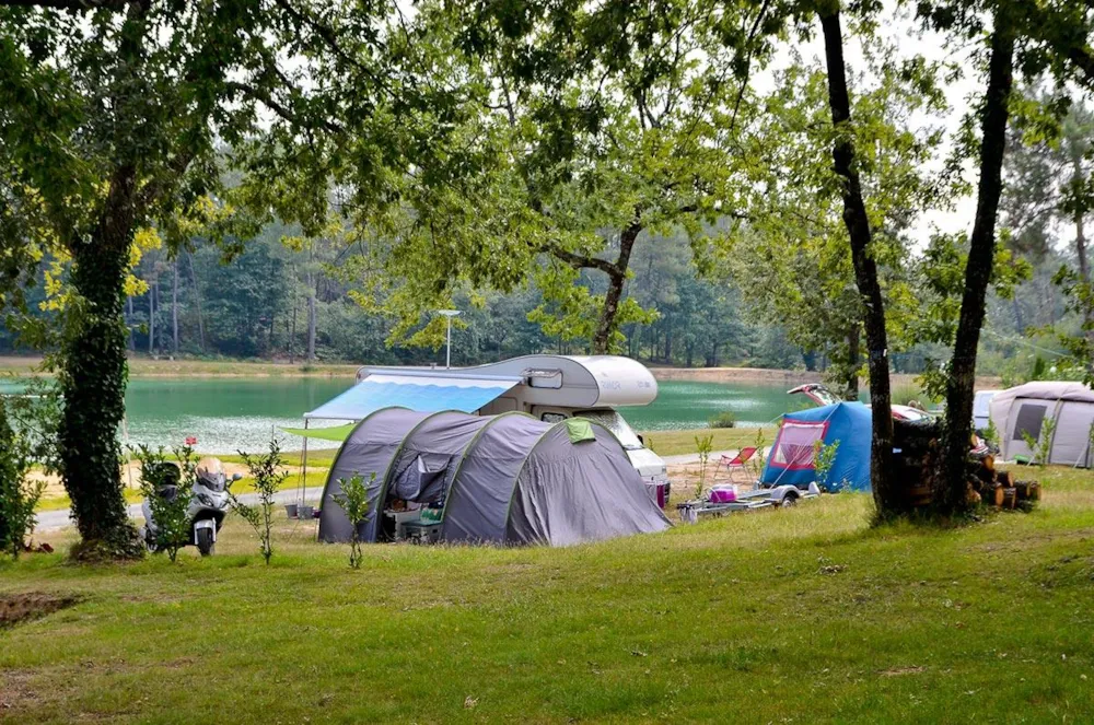Erleben Sie einen Aufenthalt mitten in der Natur auf einem geräumigen, schattigen Stellplatz, nur wenige Schritte vom See entfernt.